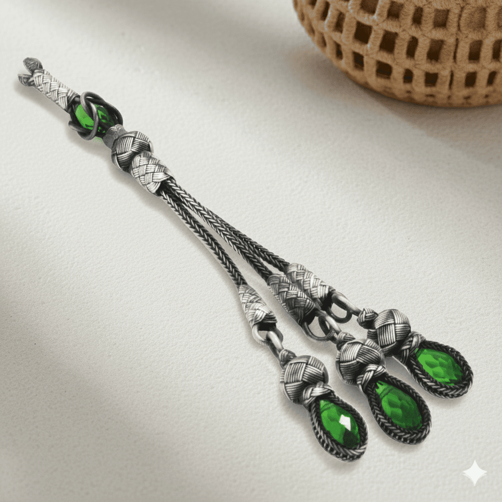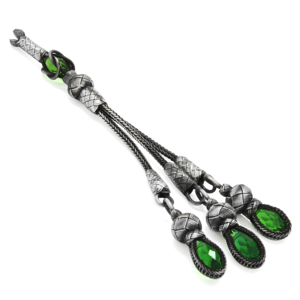 Yeşil Zirkon Taşlı 3 lü 1000 Ayar Gümüş Kazaz Püskül