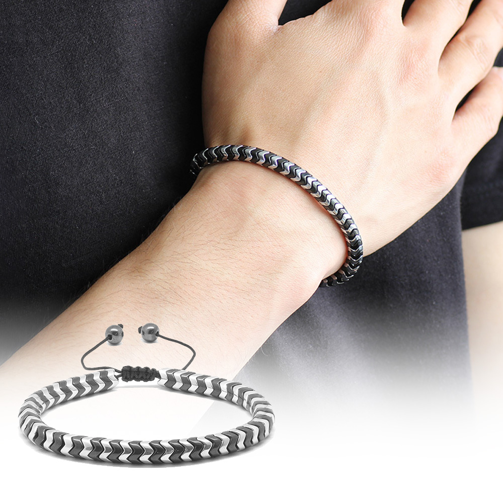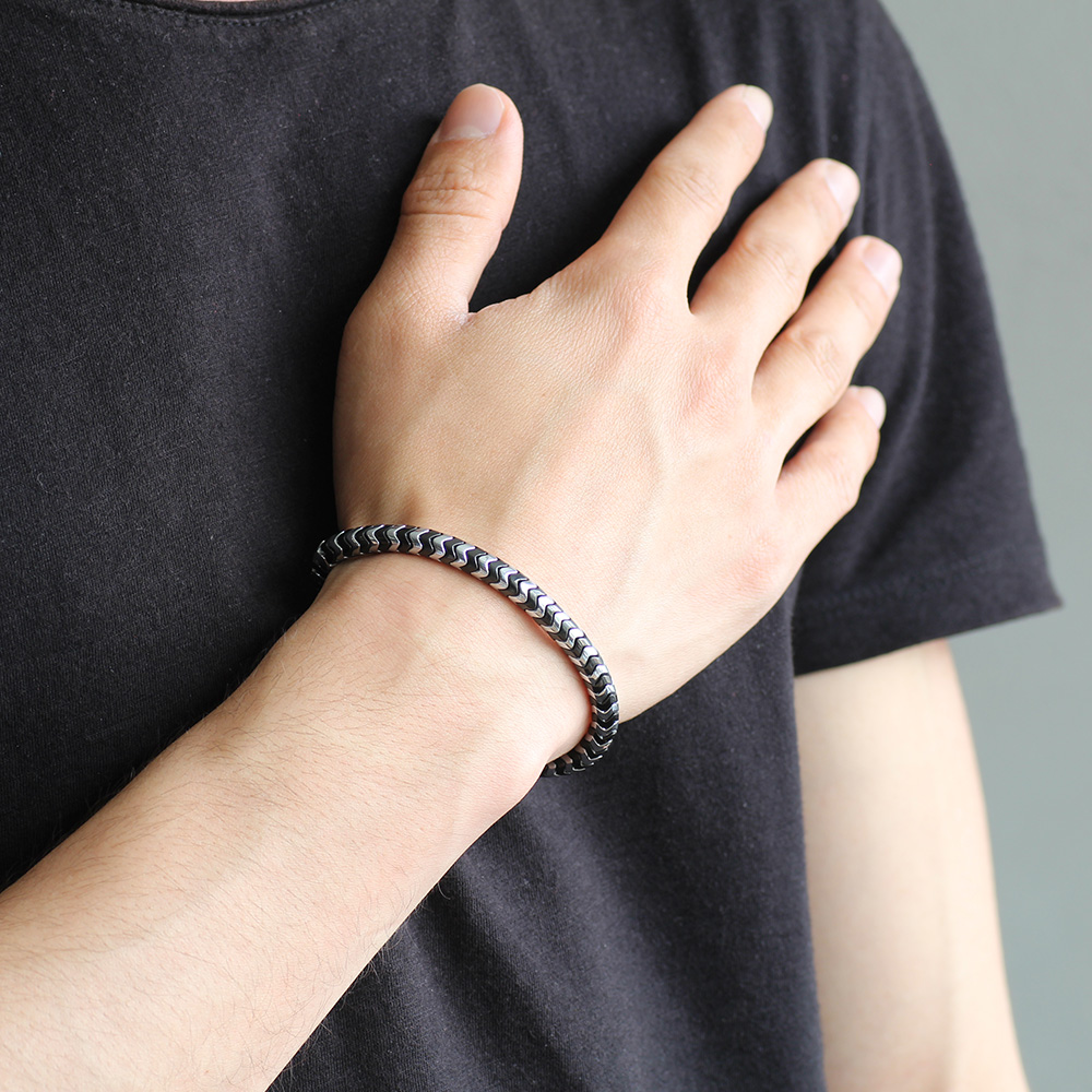Yılan Tasarım Siyah Gümüş Renk Hematit Doğaltaş Bileklik