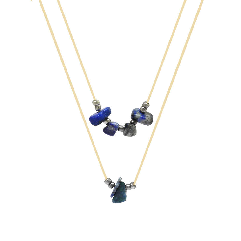 Zarif İp Zincirli Doğal Form Lapis Doğaltaş Kadın Kolye