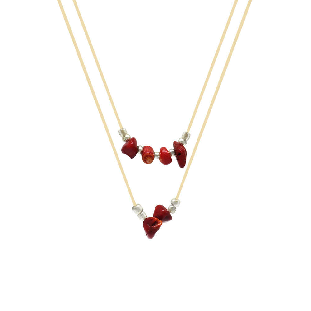 Zarif İp Zincirli Natural Form Mercan Doğaltaş Kadın Kolye