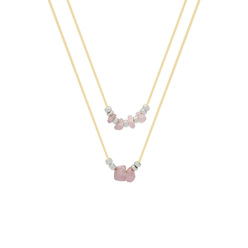 Zarif İp Zincirli Natural Form Pembe Kuvars Doğaltaş Kadın Kolye