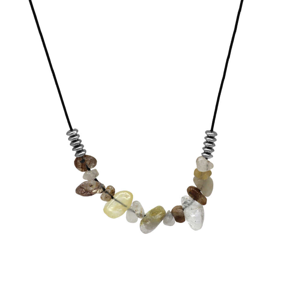 Zarif İp Zincirli Doğal Form Rutil Kuvars Doğaltaş Kadın Kolye