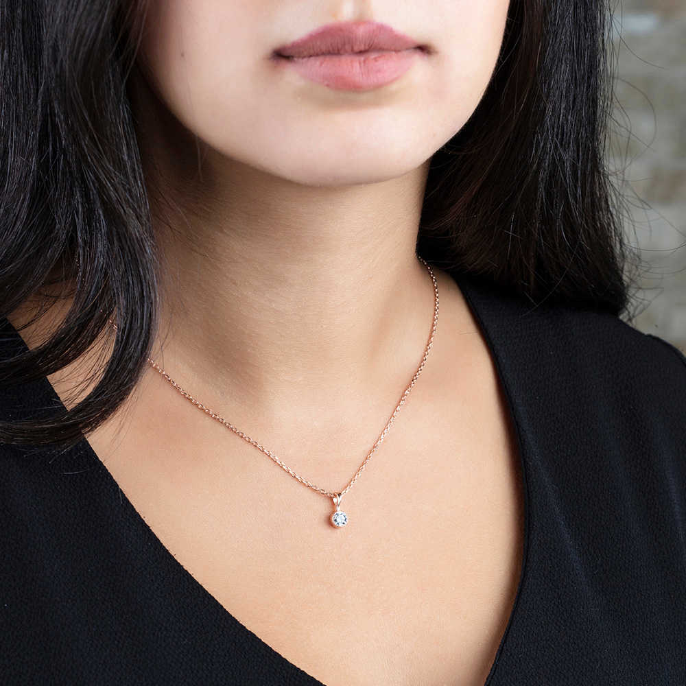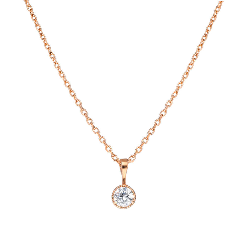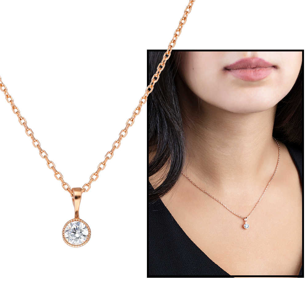 Zarif Tasarım Rose Renk Zirkon Tek Taşlı 925 Ayar Gümüş Bayan Kolye