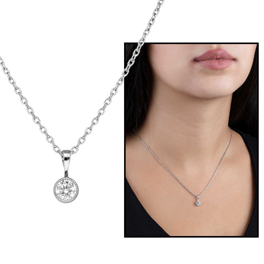 Zarif Tasarım Zirkon Tek Taşlı 925 Ayar Gümüş Bayan Kolye