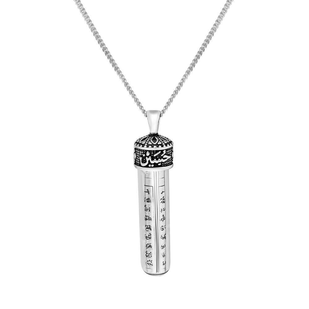 Zemzem İle Doldurulmuş Arapça Hasan Hüseyin Yazılı 925 Ayar Kadın Gümüş Cevşen Kolye