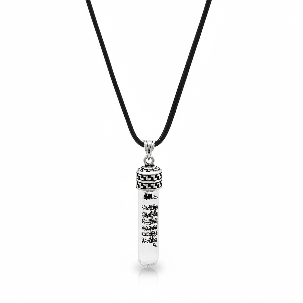 Zemzem Suyu Doldurulmuş İp Zincirli 925 Ayar Gümüş Erkek Cevşen Kolye