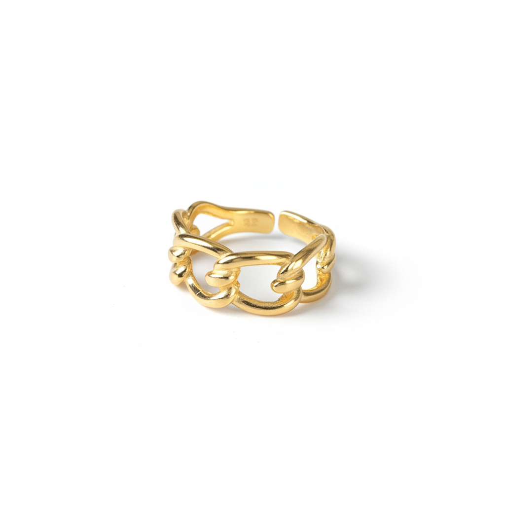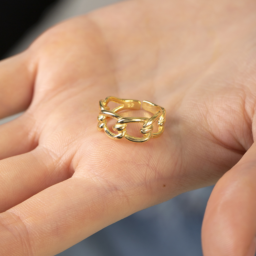 Örgü Tasarım Altın Renk Ayarlanabilir Ölçü 925 Ayar Gümüş Kadın Yüzük