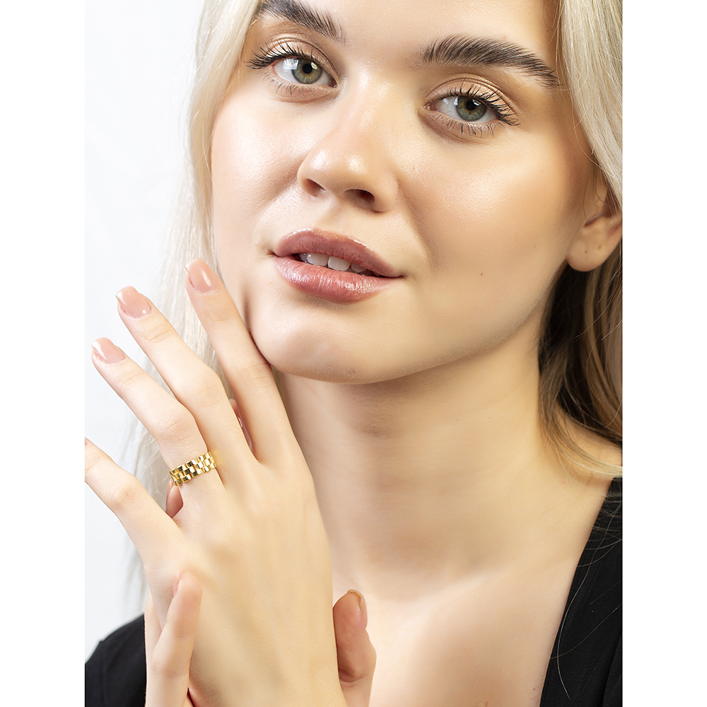 Zincir Tasarım Altın Renk Ayarlanabilir Ölçü 925 Ayar Gümüş Kadın Yüzük
