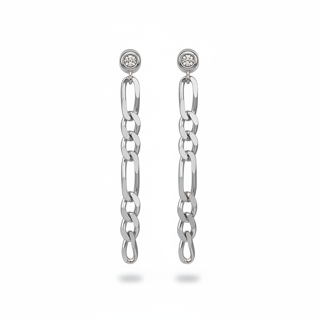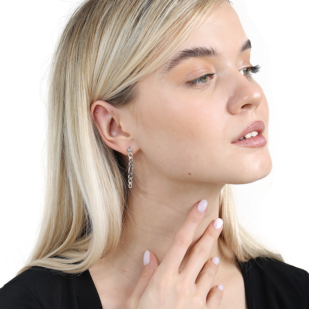 Zincir Tasarım Sallantılı Model Gümüş Renk 925 Ayar Gümüş Kadın Küpe