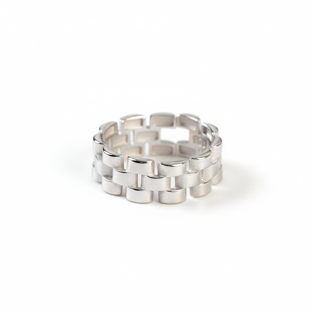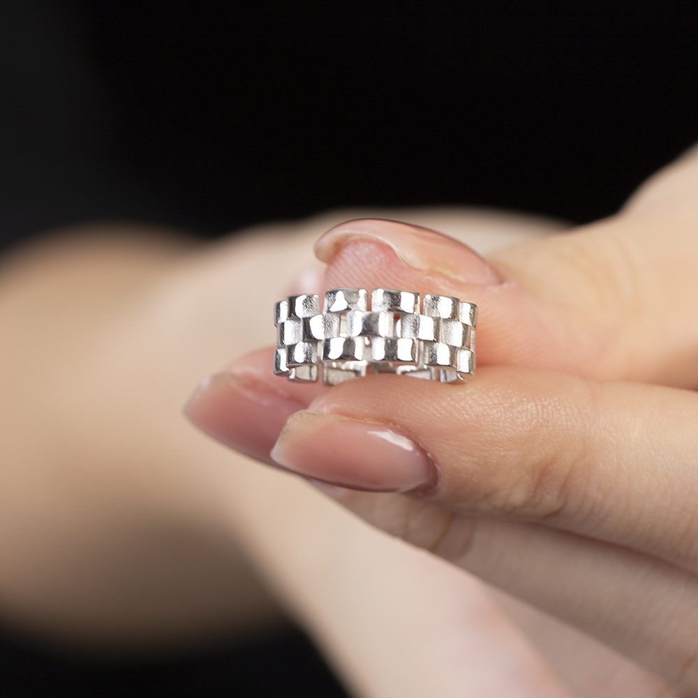 Zincir Tasarım Gümüş Renk Ayarlanabilir Ölçü 925 Ayar Gümüş Kadın Yüzük