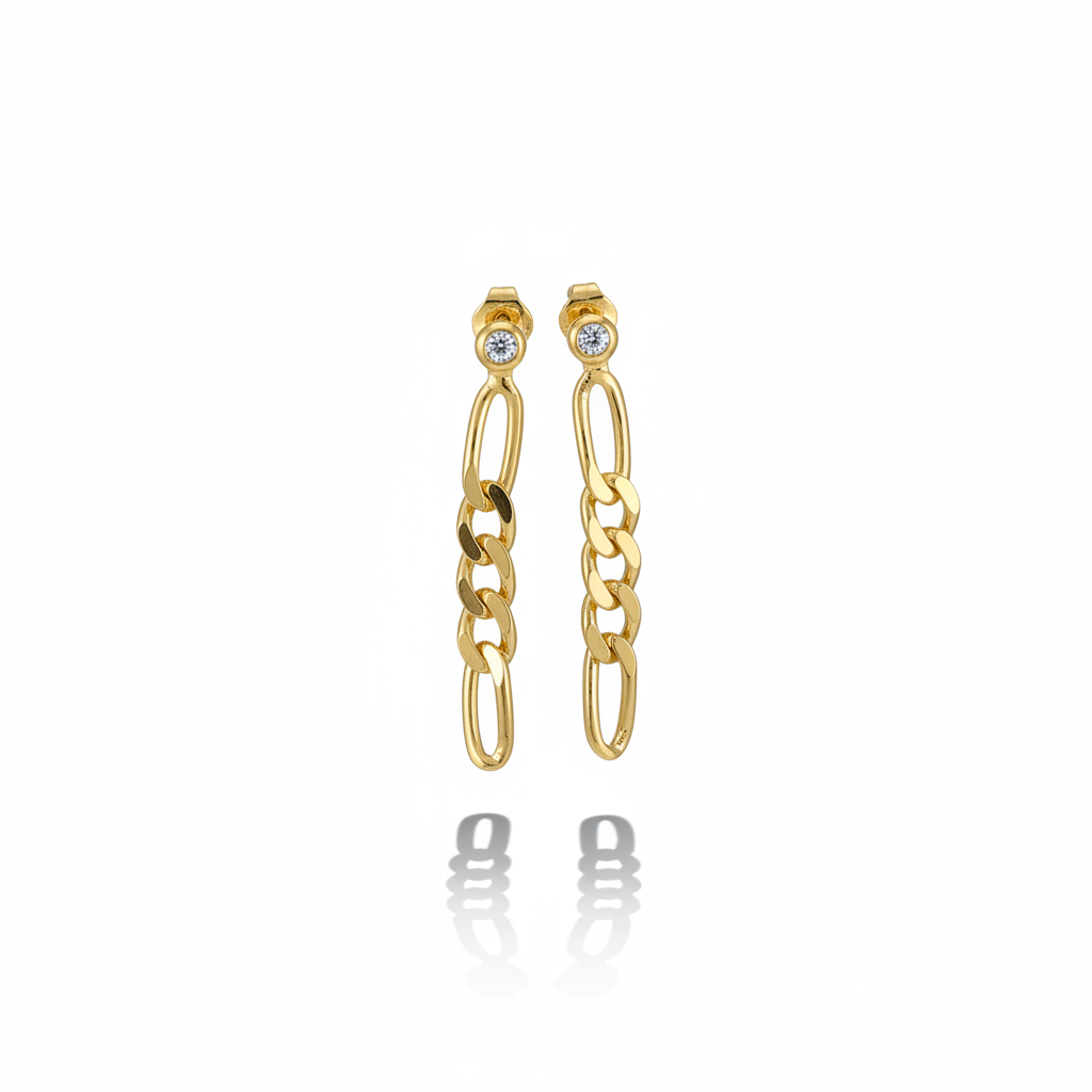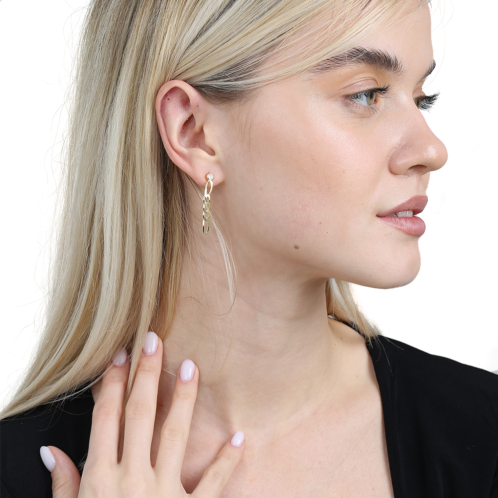 Zincir Tasarım Altın Renk 925 Ayar Gümüş Kadın Küpe