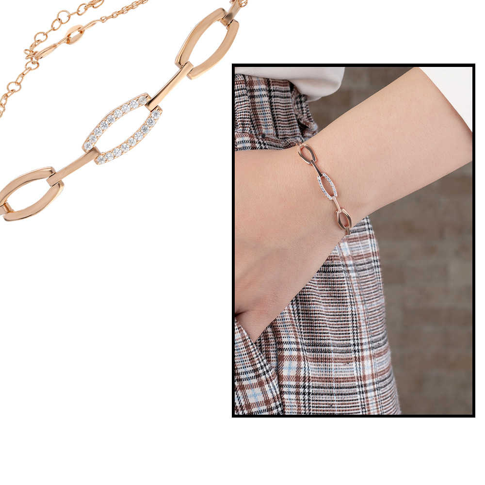 Zirkon Taşlı 3 lü Cats Eye Rose Renk 925 Ayar Gümüş Bayan Bileklik - 3