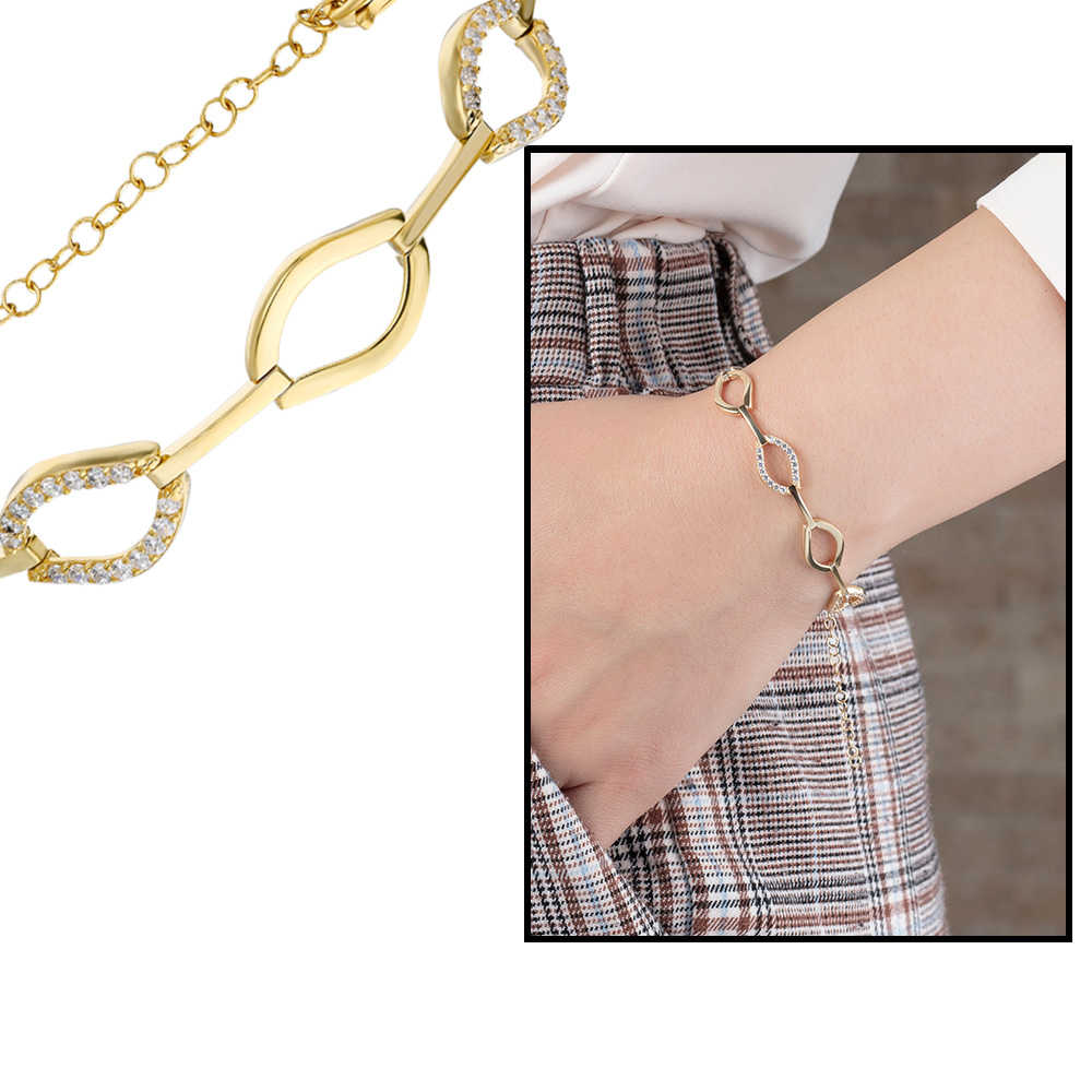 Zirkon Taşlı 6 lı Marina Model Altın Renk 925 Ayar Gümüş Bayan Bileklik