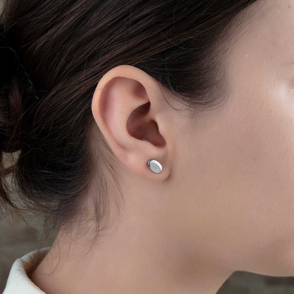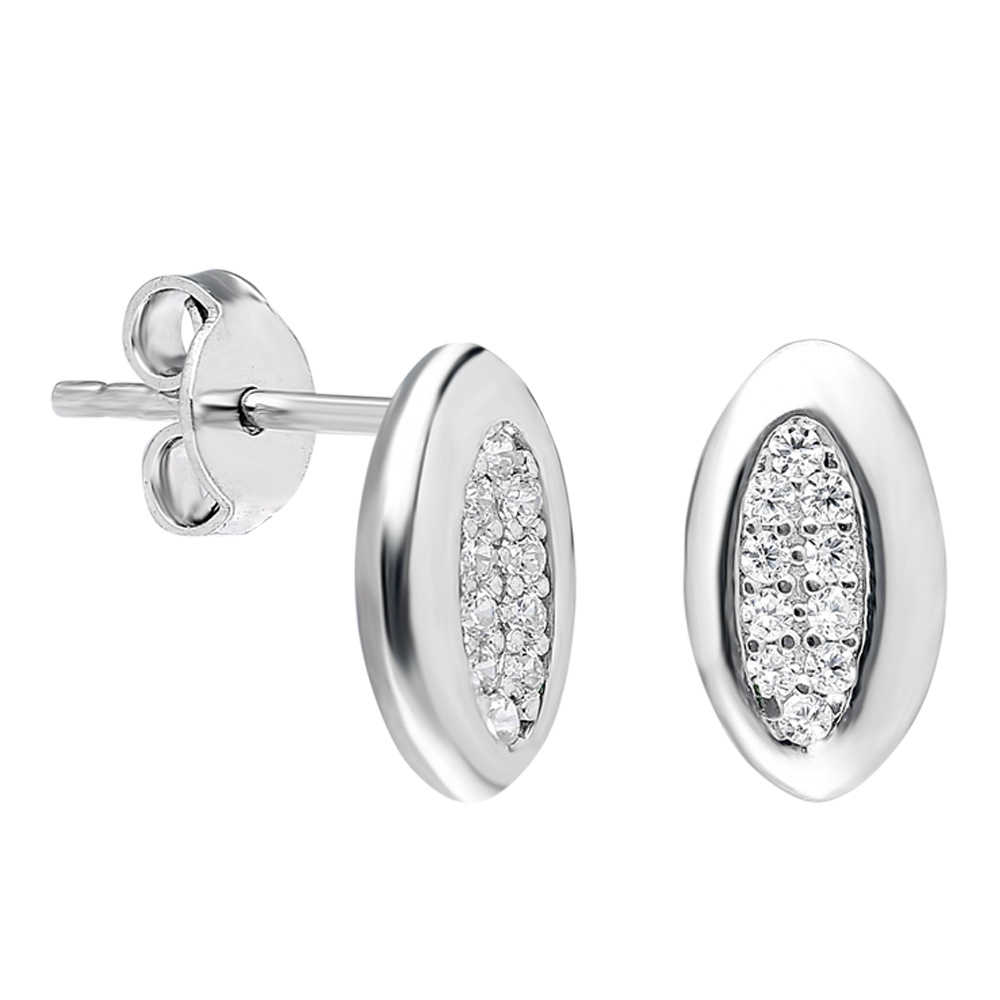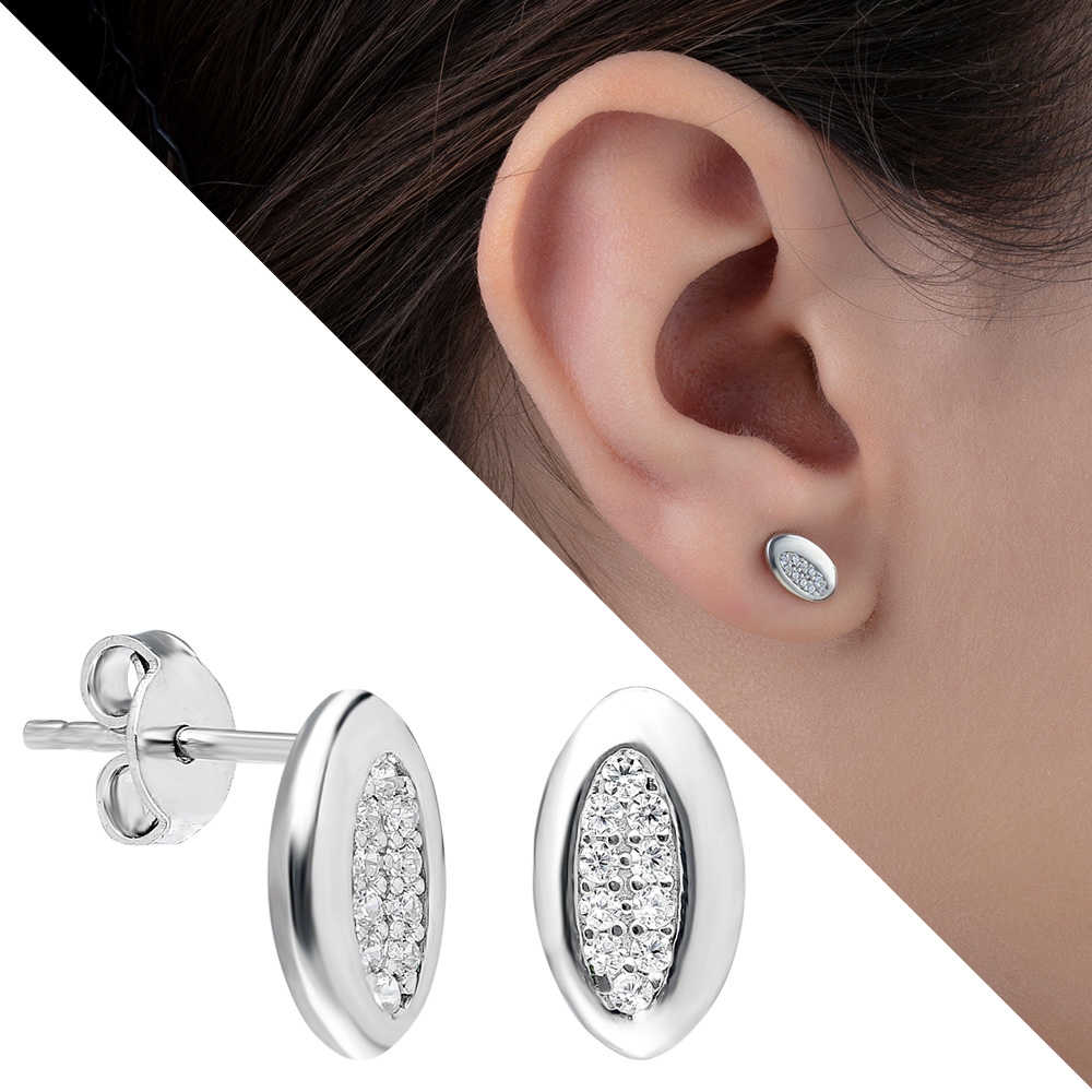 Zirkon Taşlı Bakla Tasarım 925 Ayar Gümüş Küpe