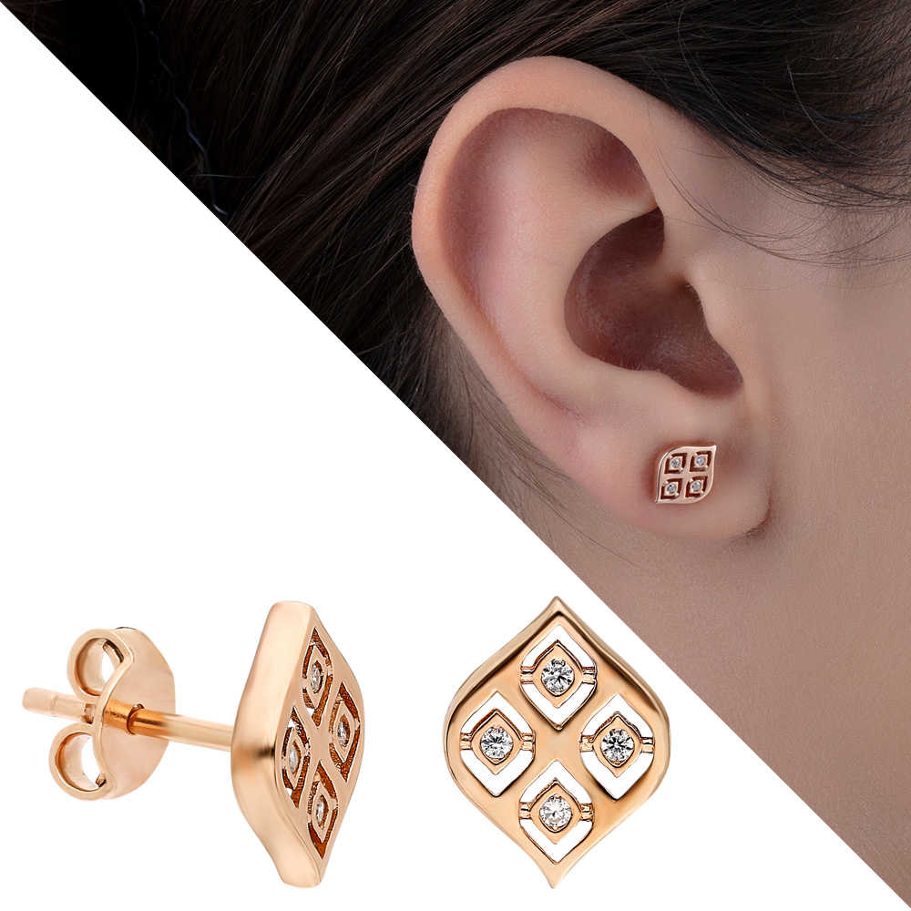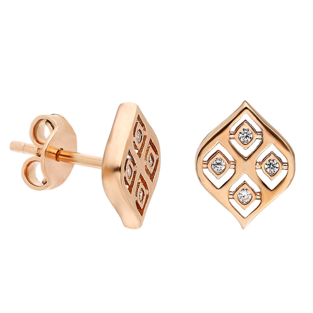 Zirkon Taşlı Baklava Tasarım Altın Renk 925 Ayar Gümüş Küpe