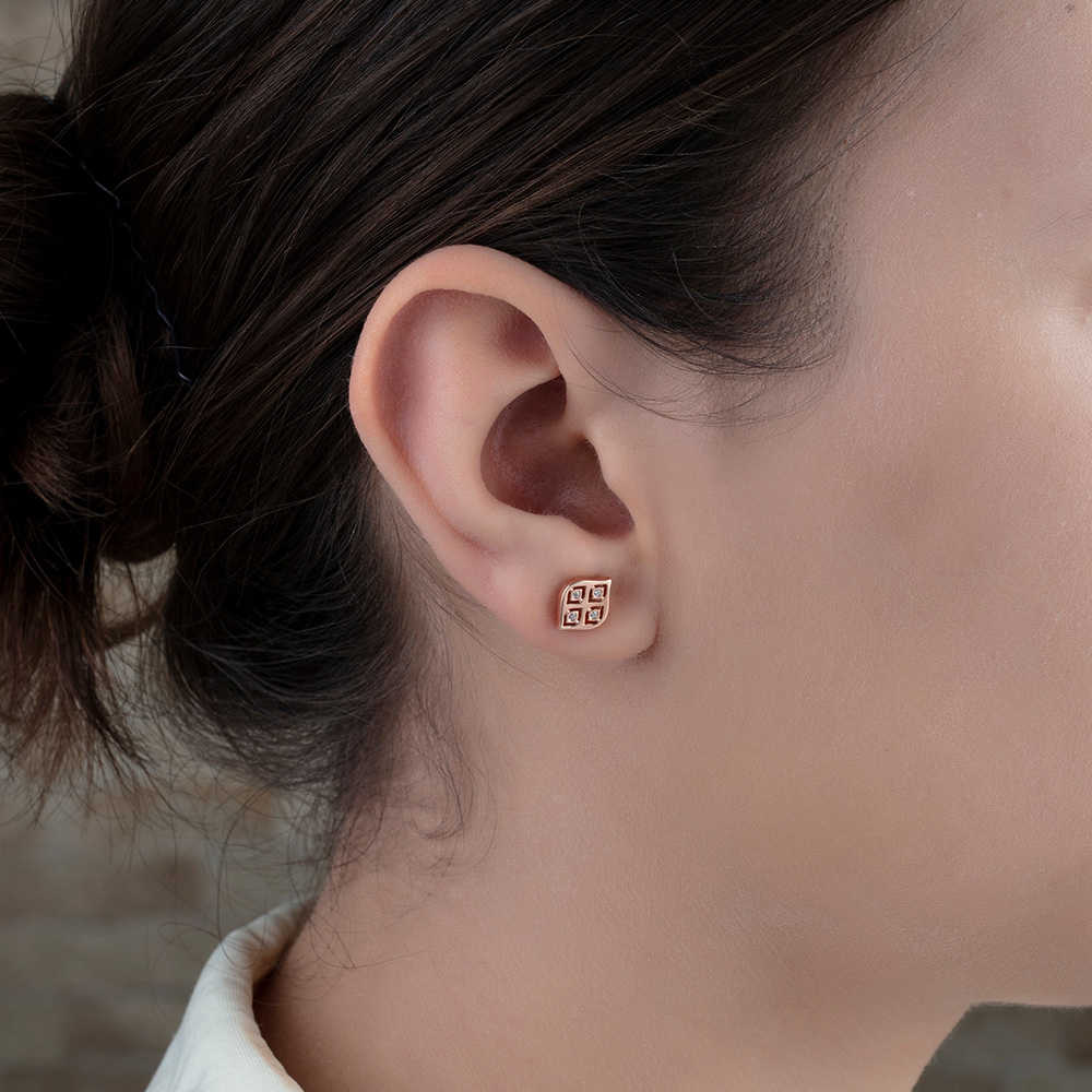 Zirkon Taşlı Baklava Tasarım Altın Renk 925 Ayar Gümüş Küpe - 5