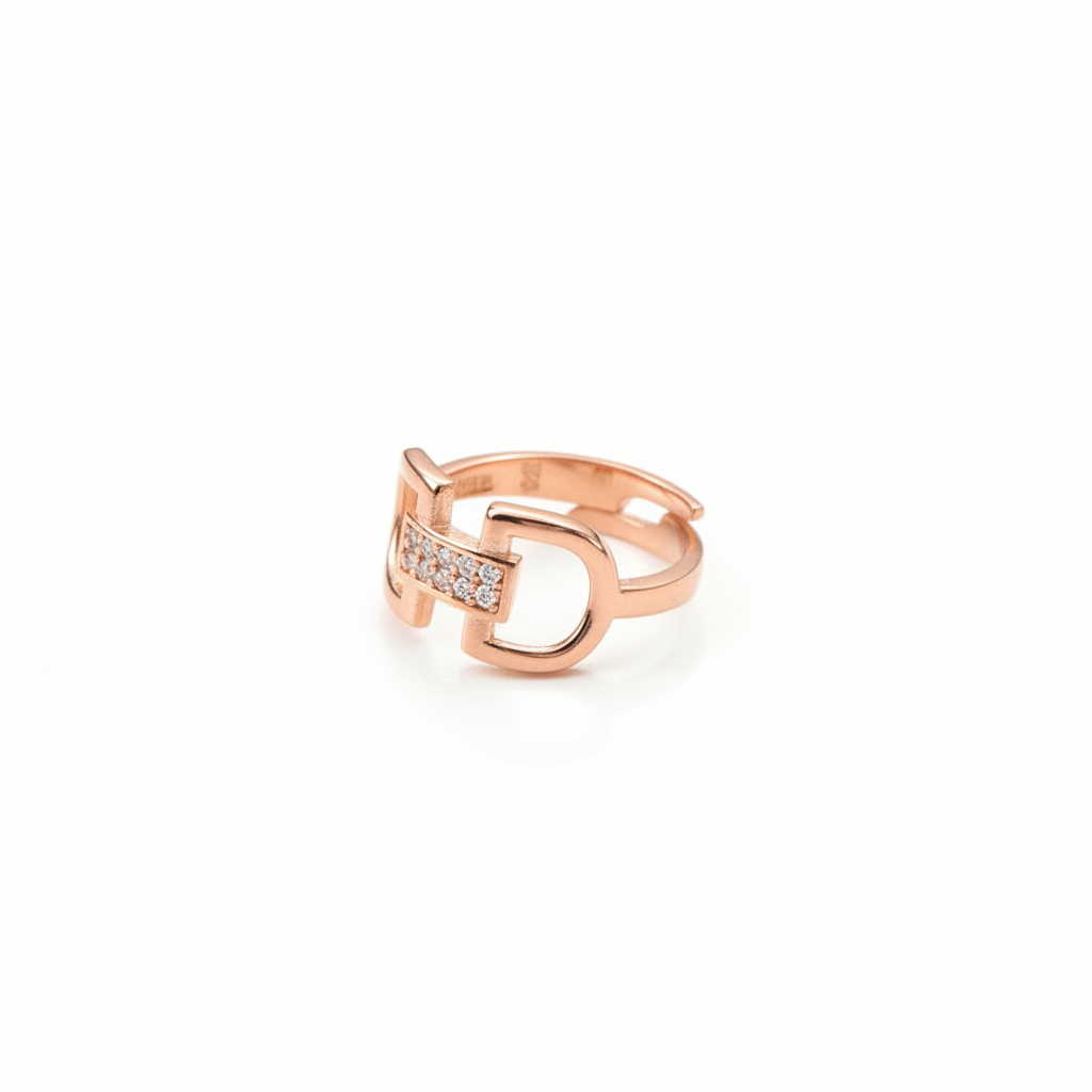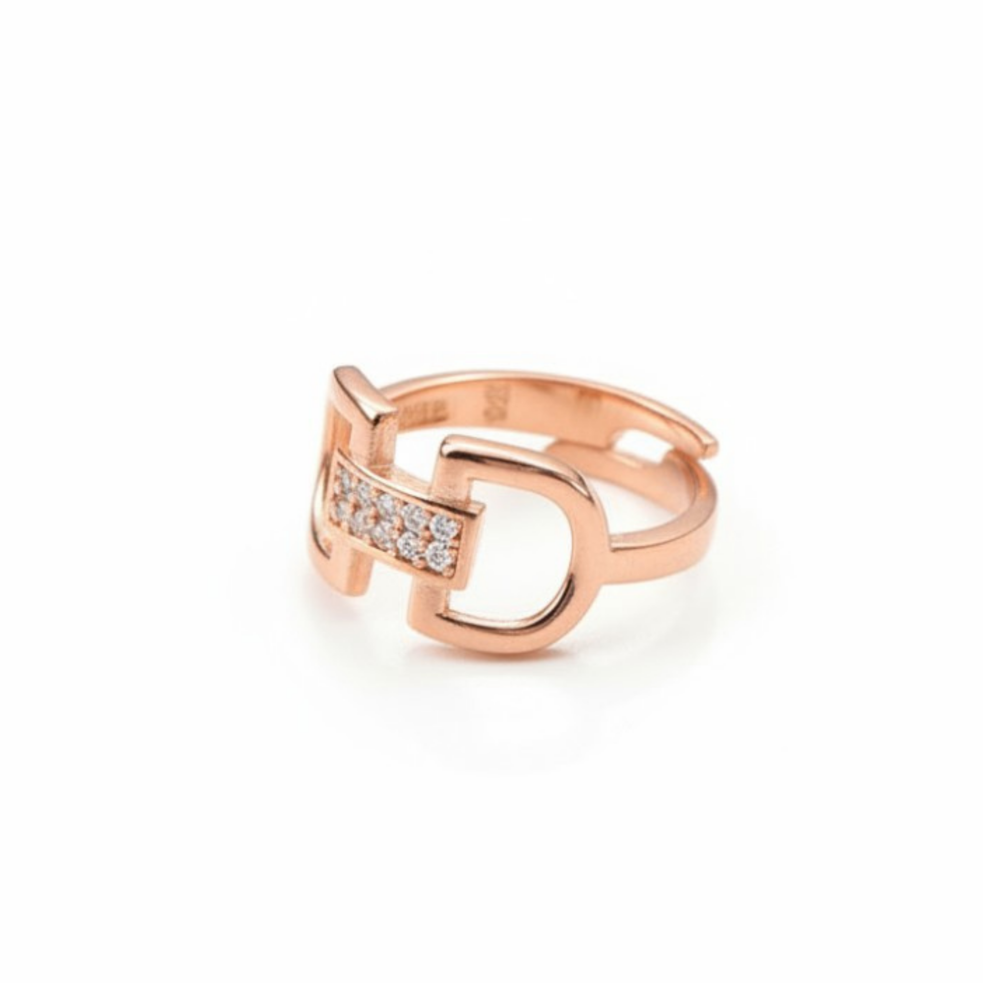 Zirkon Taşlı Zarif Tasarım Rose Renk Ayarlanabilir Ölçü 925 Ayar Gümüş Kadın Yüzük