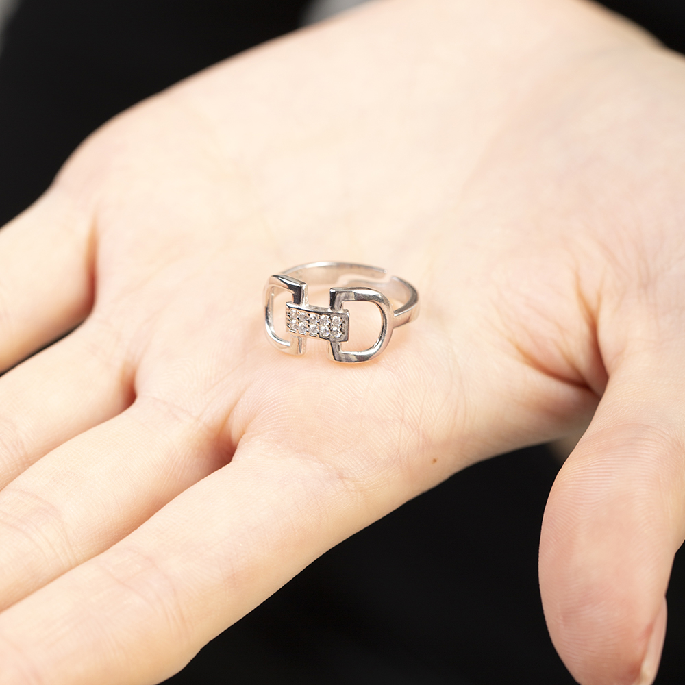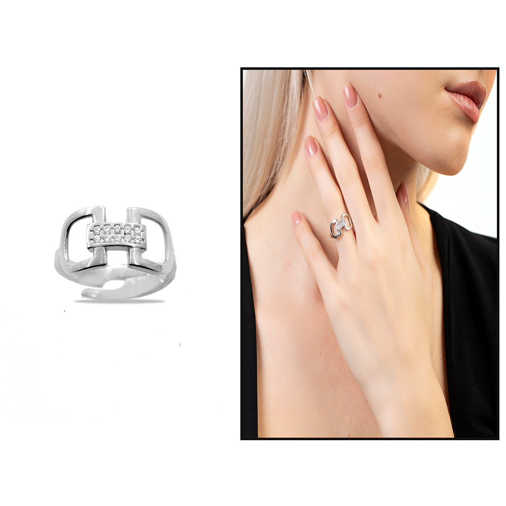 Zirkon Taşlı Zarif Tasarım Gümüş Renk Ayarlanabilir Ölçü 925 Ayar Gümüş Kadın Yüzük