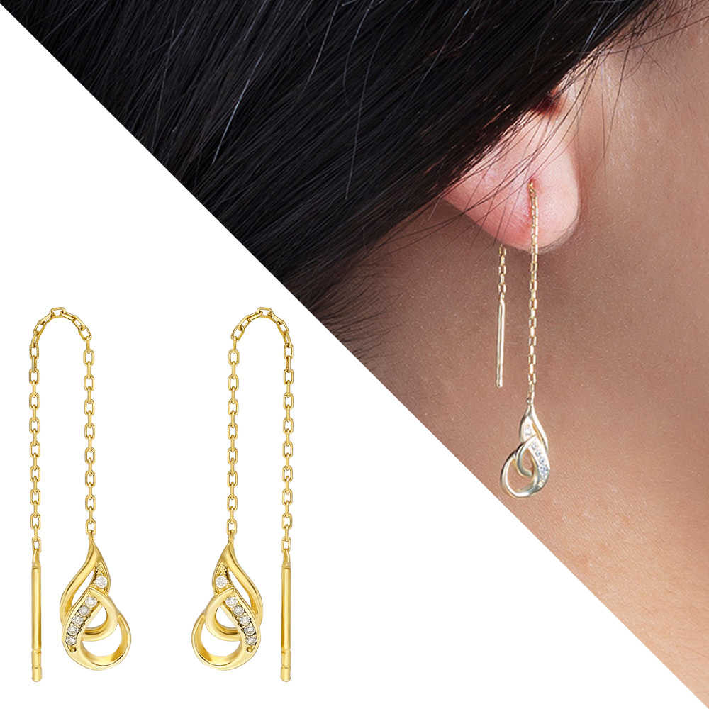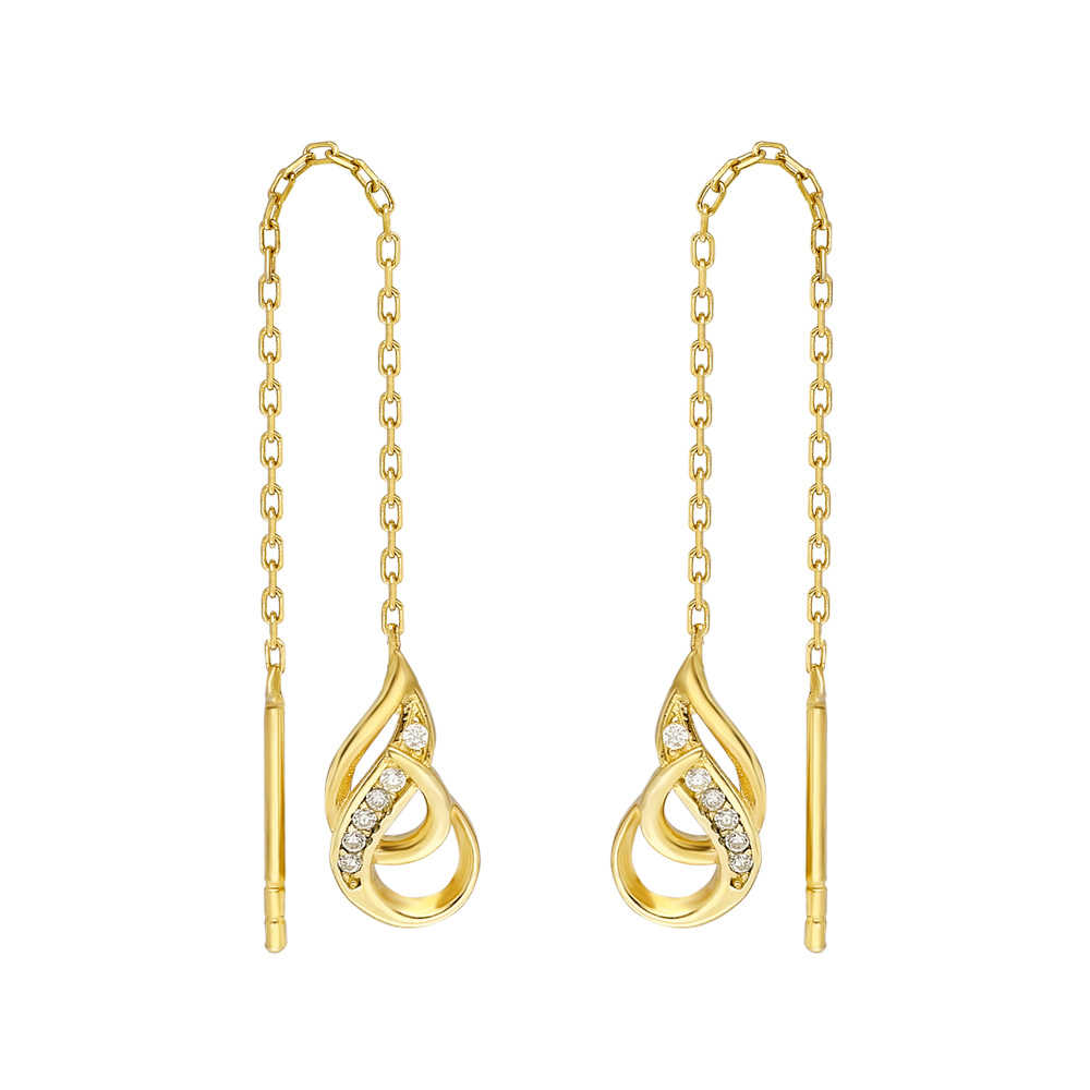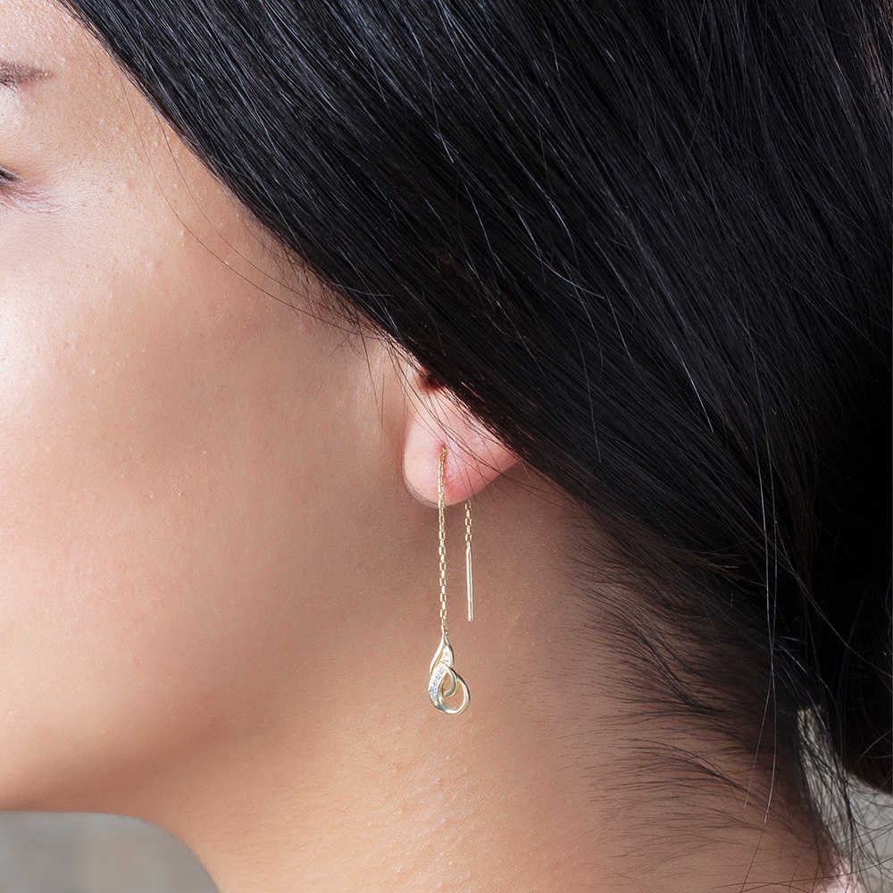 Zirkon Taşlı Çengel Tasarım Altın Renk 925 Ayar Gümüş Sallantılı Küpe - 1