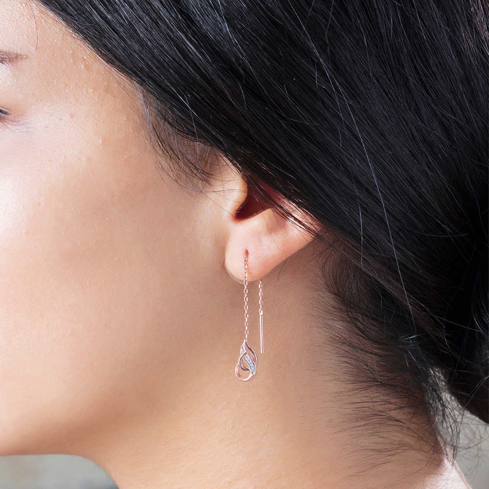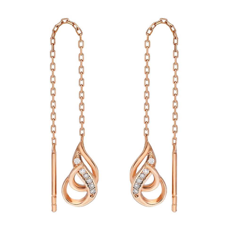Zirkon Taşlı Çengel Tasarım Rose Renk 925 Ayar Gümüş Sallantılı Küpe
