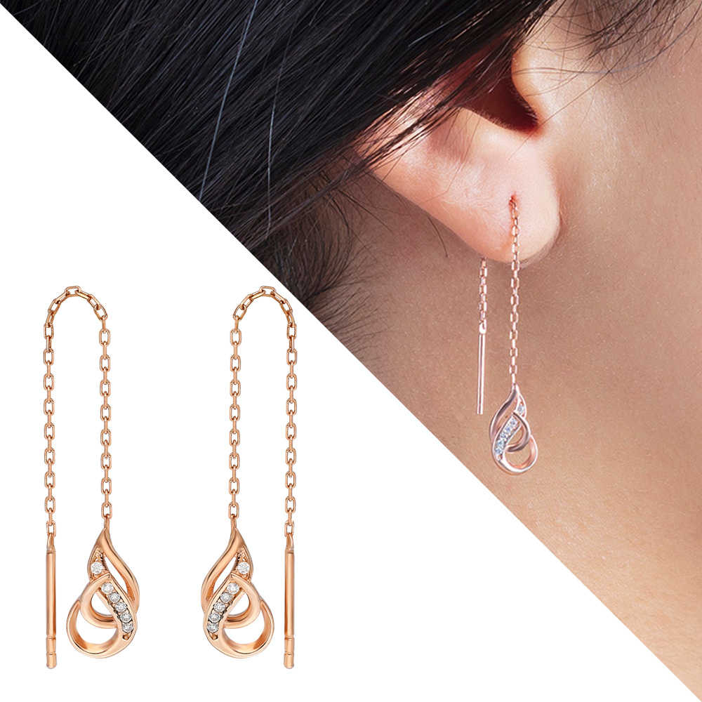 Zirkon Taşlı Çengel Tasarım Rose Renk 925 Ayar Gümüş Sallantılı Küpe - 1