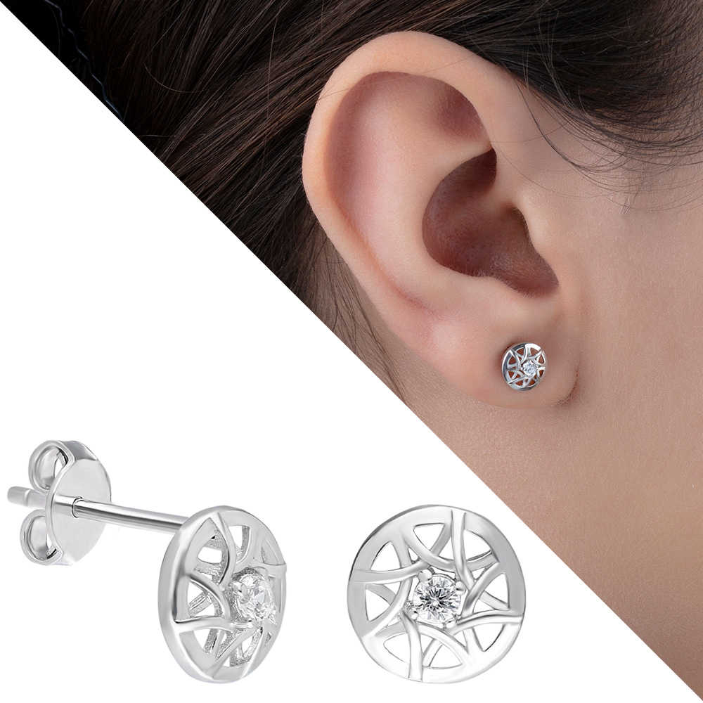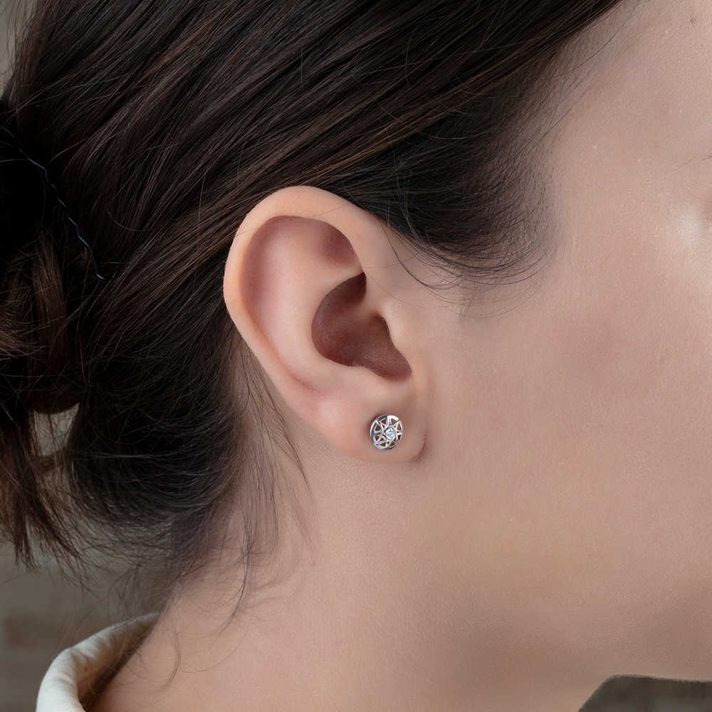 Zirkon Taşlı Daire Tasarım 925 Ayar Gümüş Küpe