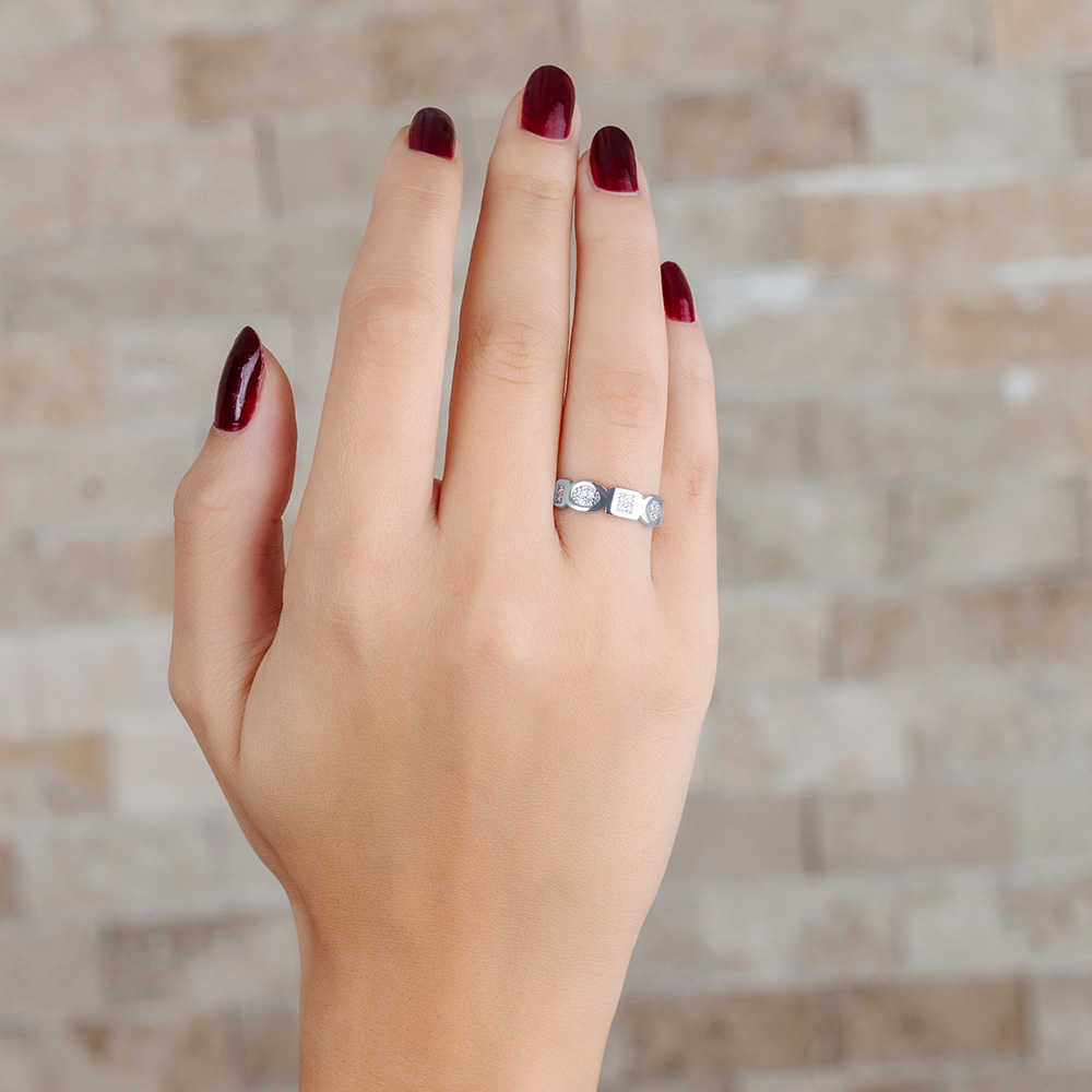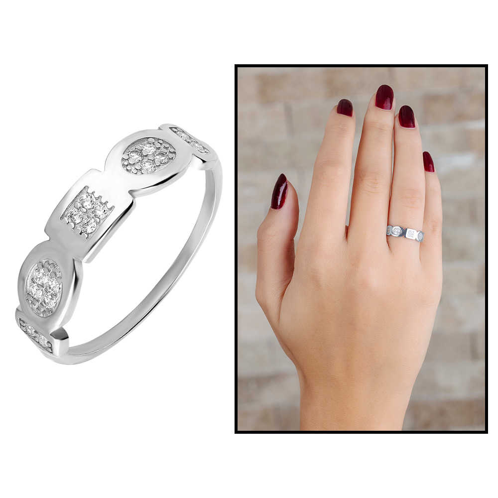 Zirkon Taşlı Geometrik Tasarım 925 Ayar Gümüş Bayan Yüzük