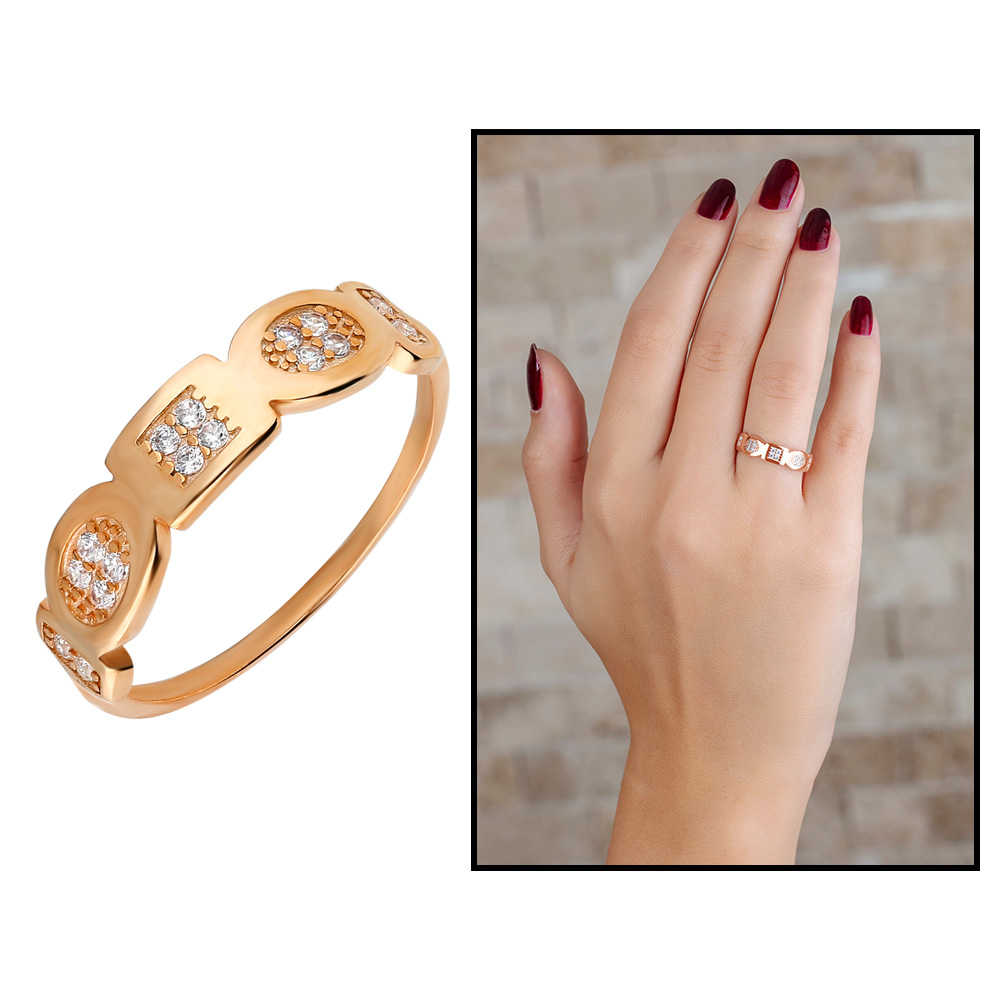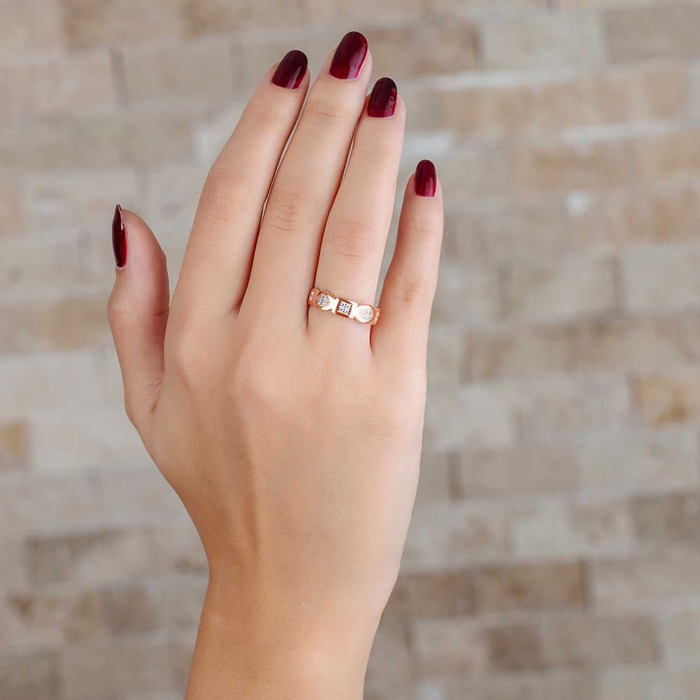 Zirkon Taşlı Geometrik Tasarım Rose Renk 925 Ayar Gümüş Bayan Yüzük