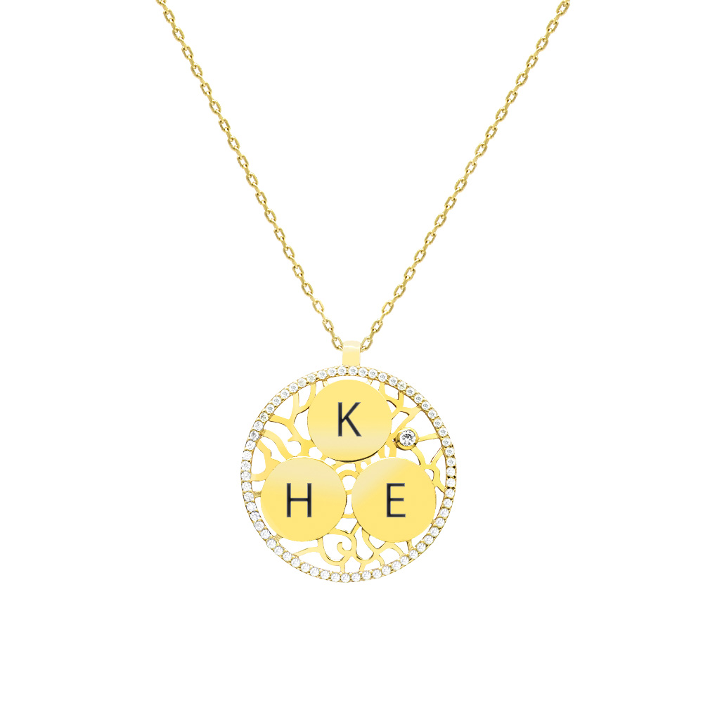 Zirkon Taşlı Altın Renk Kişiye Özel Üç İsim Veya Harf Yazılı 925 Ayar Gümüş Kadın Kolye