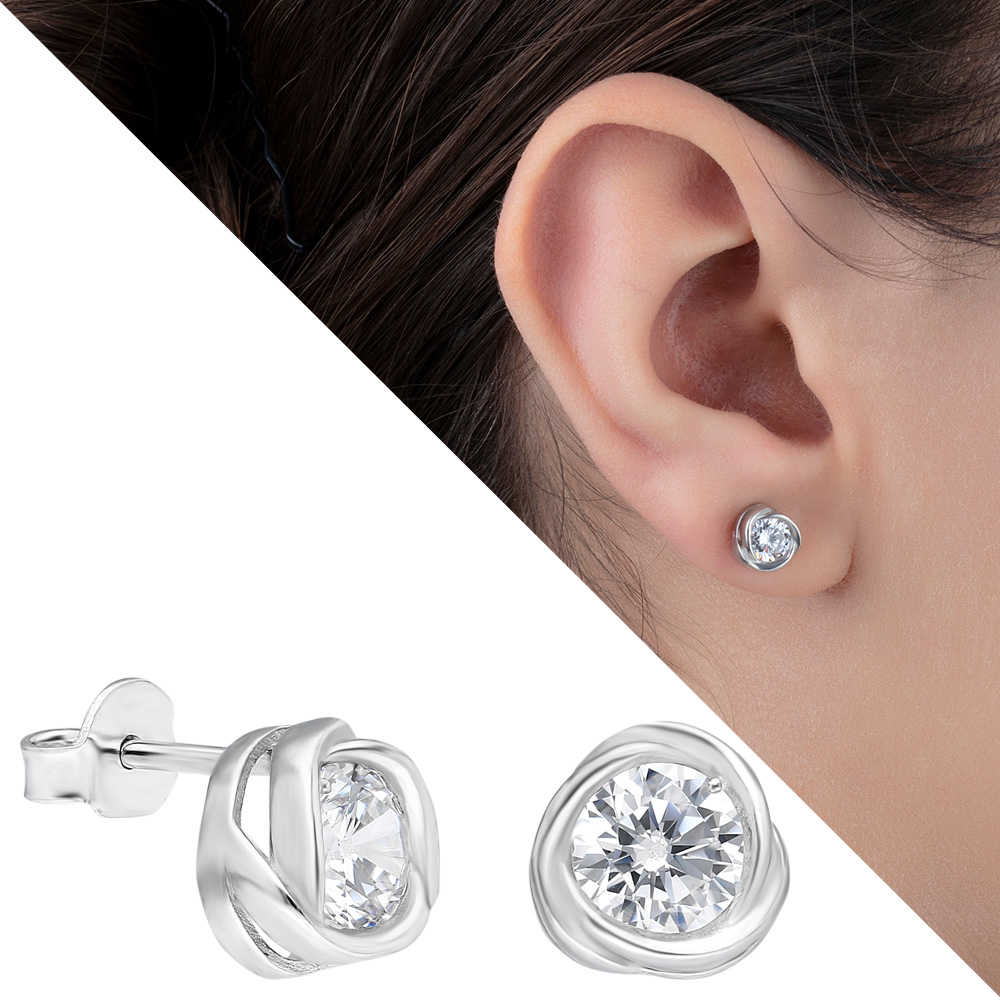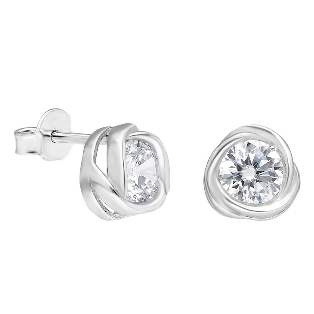 Zirkon Taşlı Gül Tasarım 925 Ayar Gümüş Küpe - M2 - 1