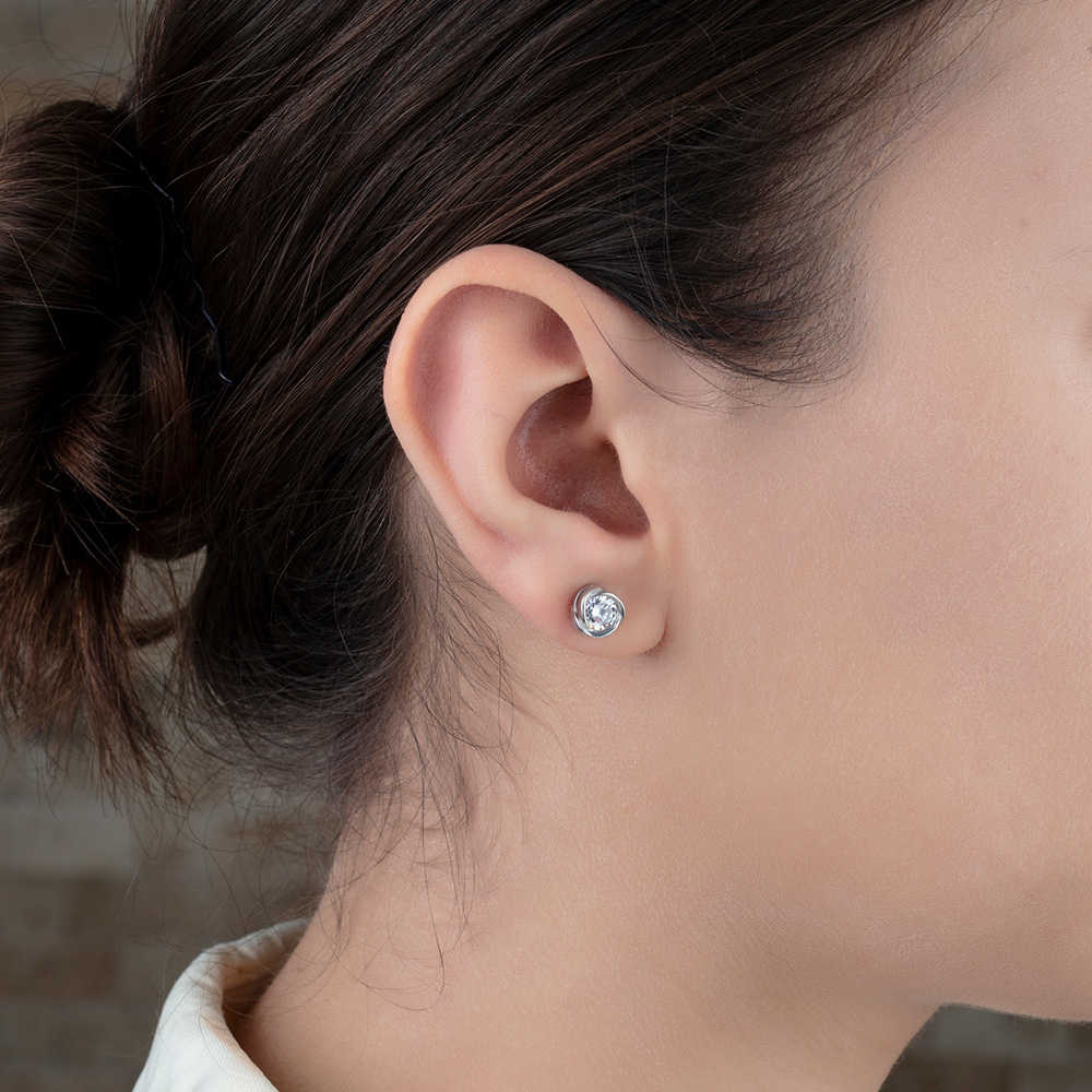 Zirkon Taşlı Gül Tasarım 925 Ayar Gümüş Küpe - M2