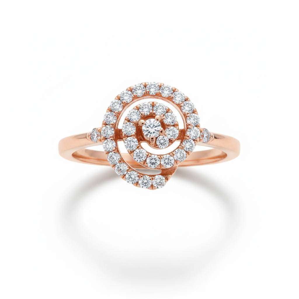 Zirkon Taşlı Helezon Tasarım Rose 925 Ayar Gümüş Bayan Yüzük