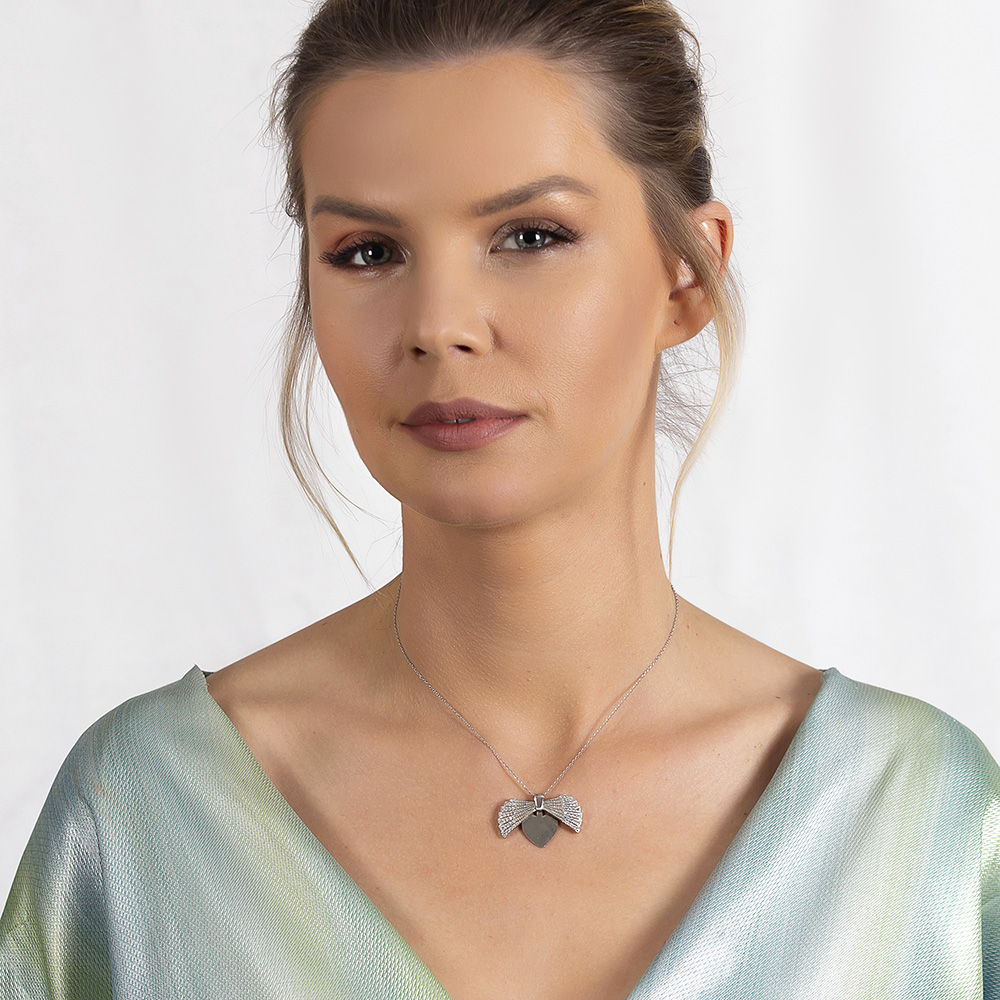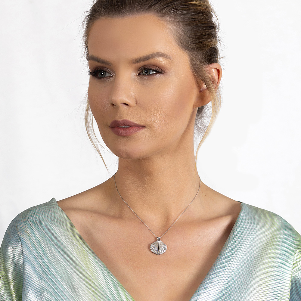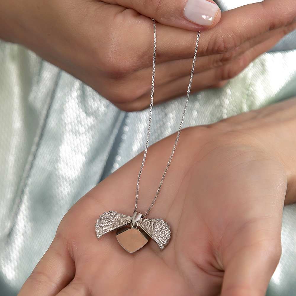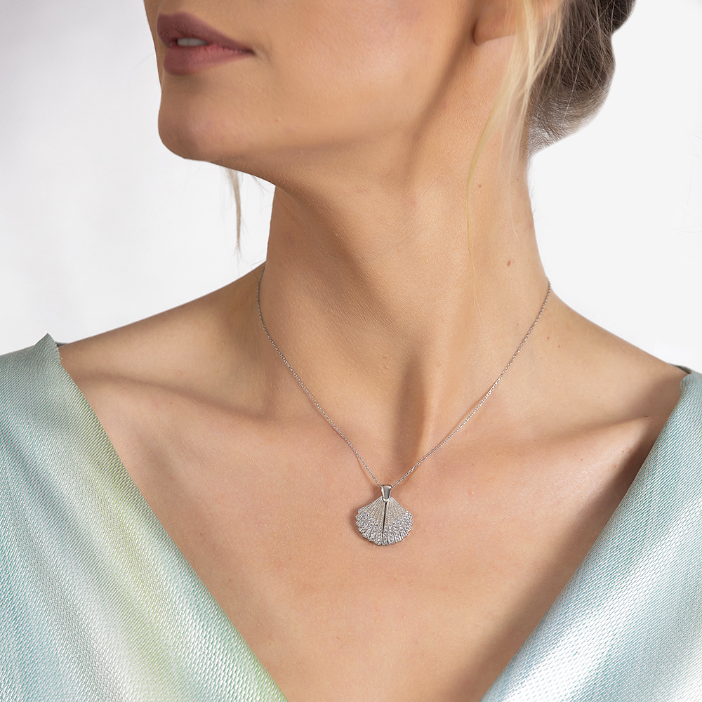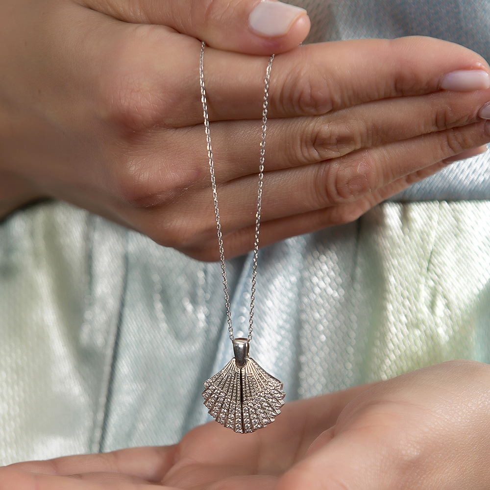 Zirkon Taşlı İstiridye Tasarım İsme Özel Yazılı 925 Ayar Gümüş Kadın Kolye