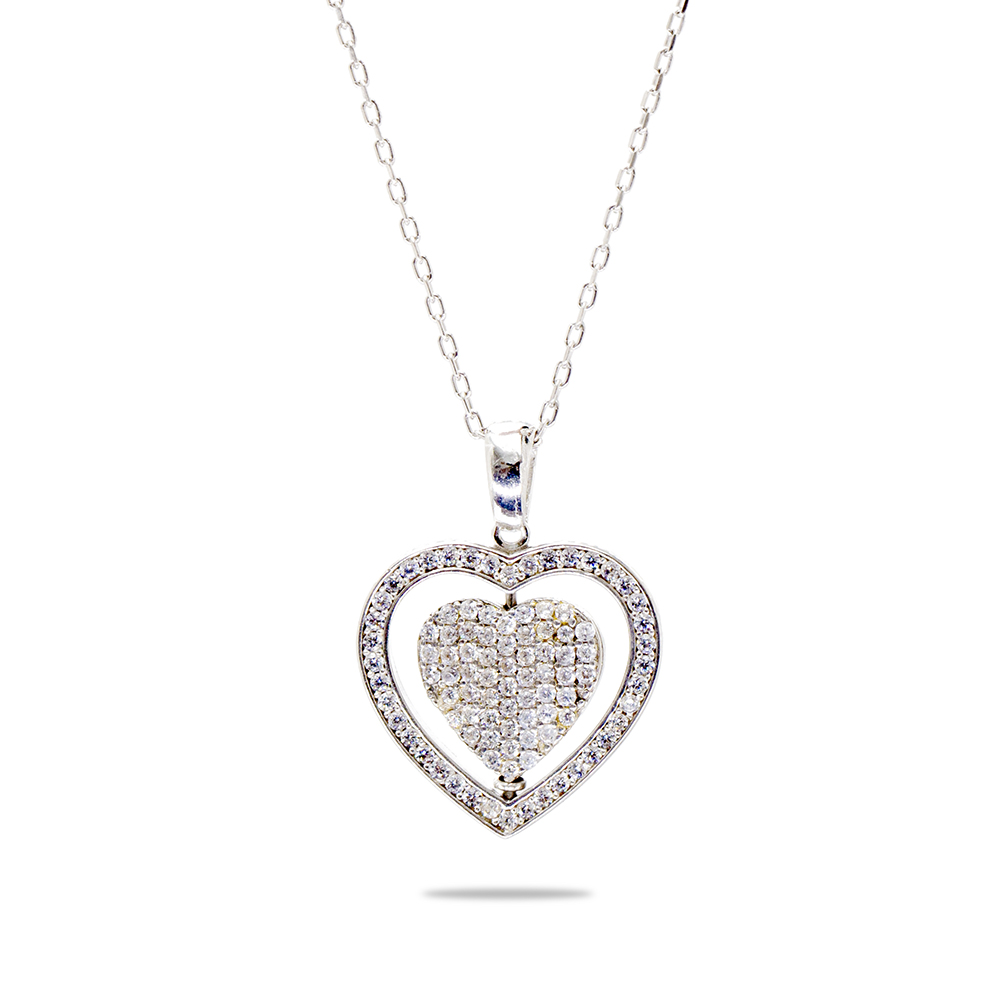 Zirkon Taşlı Kalp Model Gümüş Renk İsme Özel Yazılı 925 Ayar Gümüş Kadın Kolye
