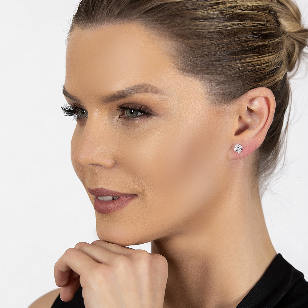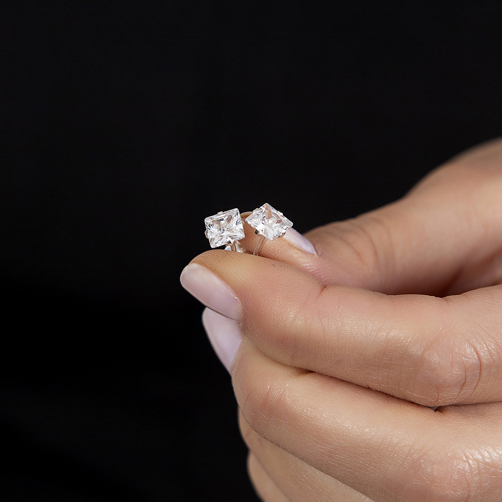 Zirkon Taşlı Kare Tasarım 925 Ayar Gümüş Kadın Küpe