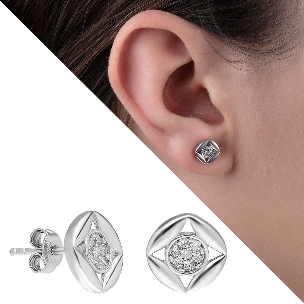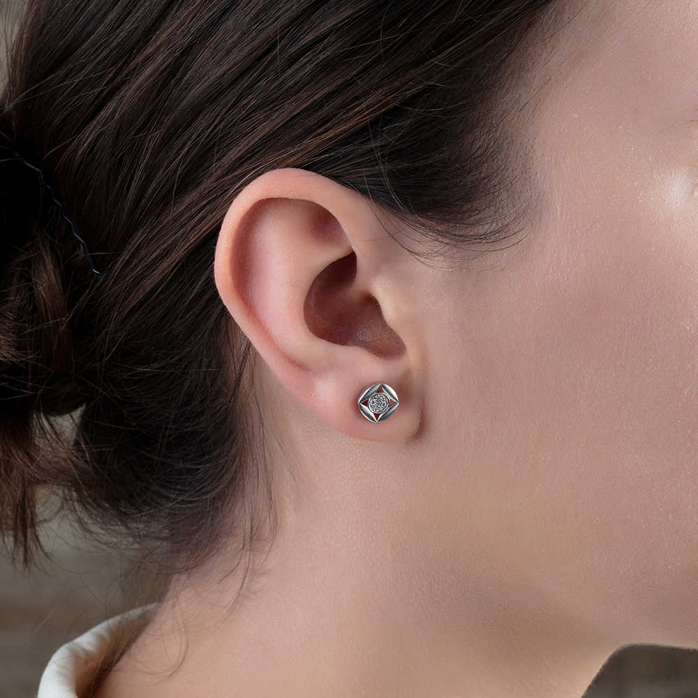 Zirkon Taşlı Kare Tasarım 925 Ayar Gümüş Küpe