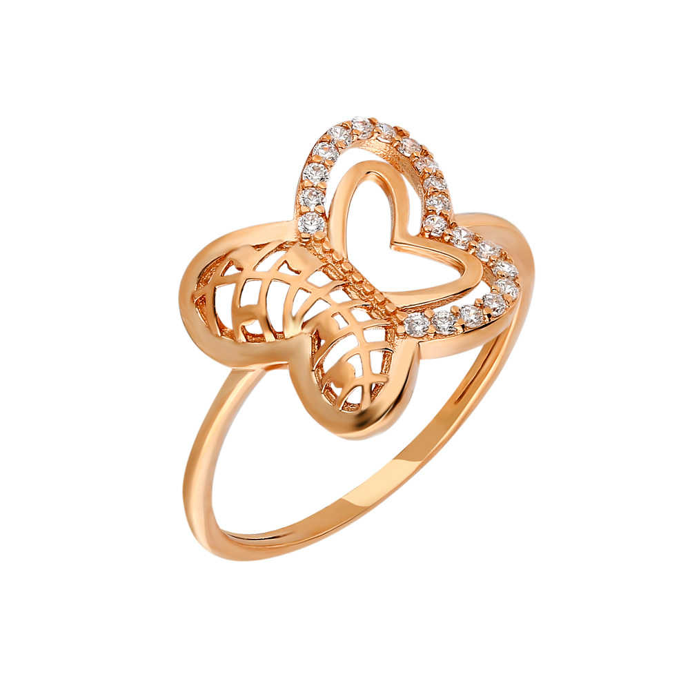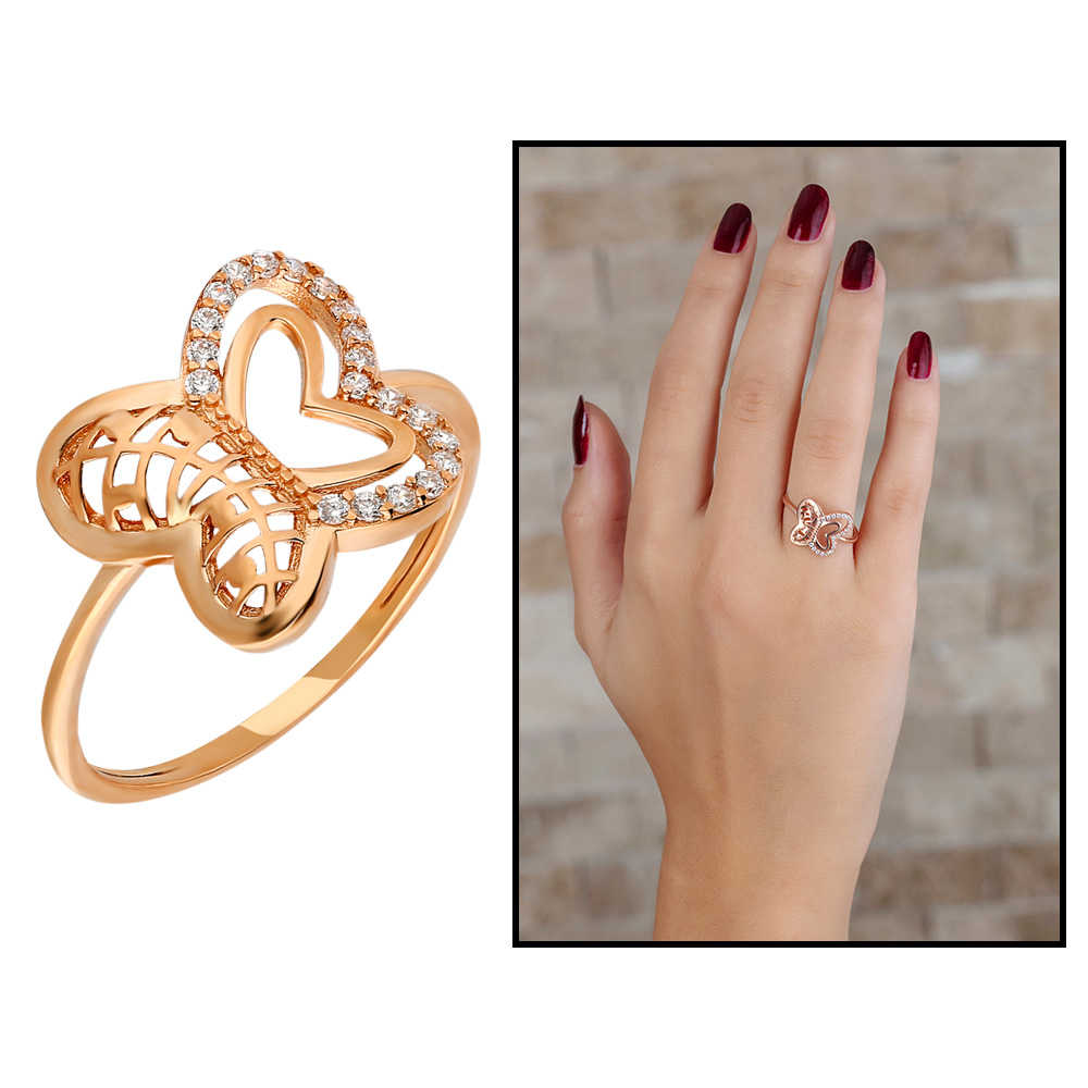 Zirkon Taşlı Kelebek Tasarım Rose Renk 925 Ayar Gümüş Bayan Yüzük