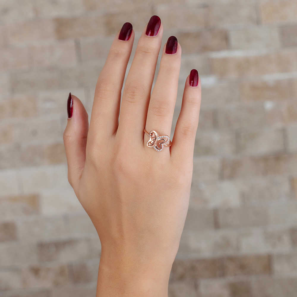 Zirkon Taşlı Kelebek Tasarım Rose Renk 925 Ayar Gümüş Bayan Yüzük - 1
