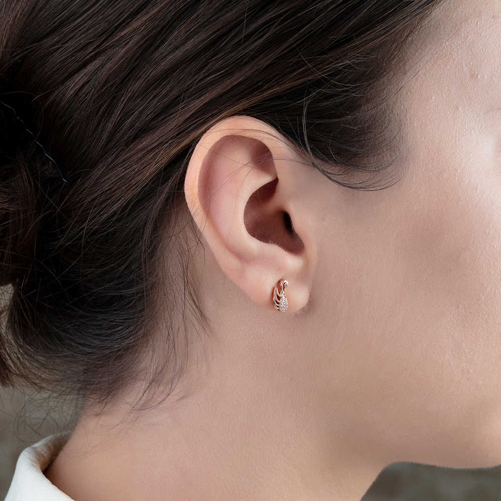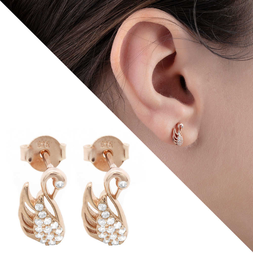 Zirkon Taşlı Kuğu Tasarım Roz Renk 925 Ayar Gümüş Küpe - 1