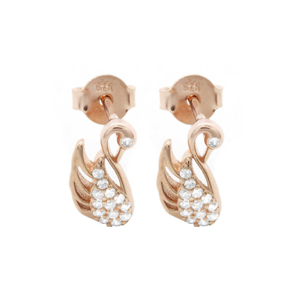 Zirkon Taşlı Kuğu Tasarım Roz Renk 925 Ayar Gümüş Küpe