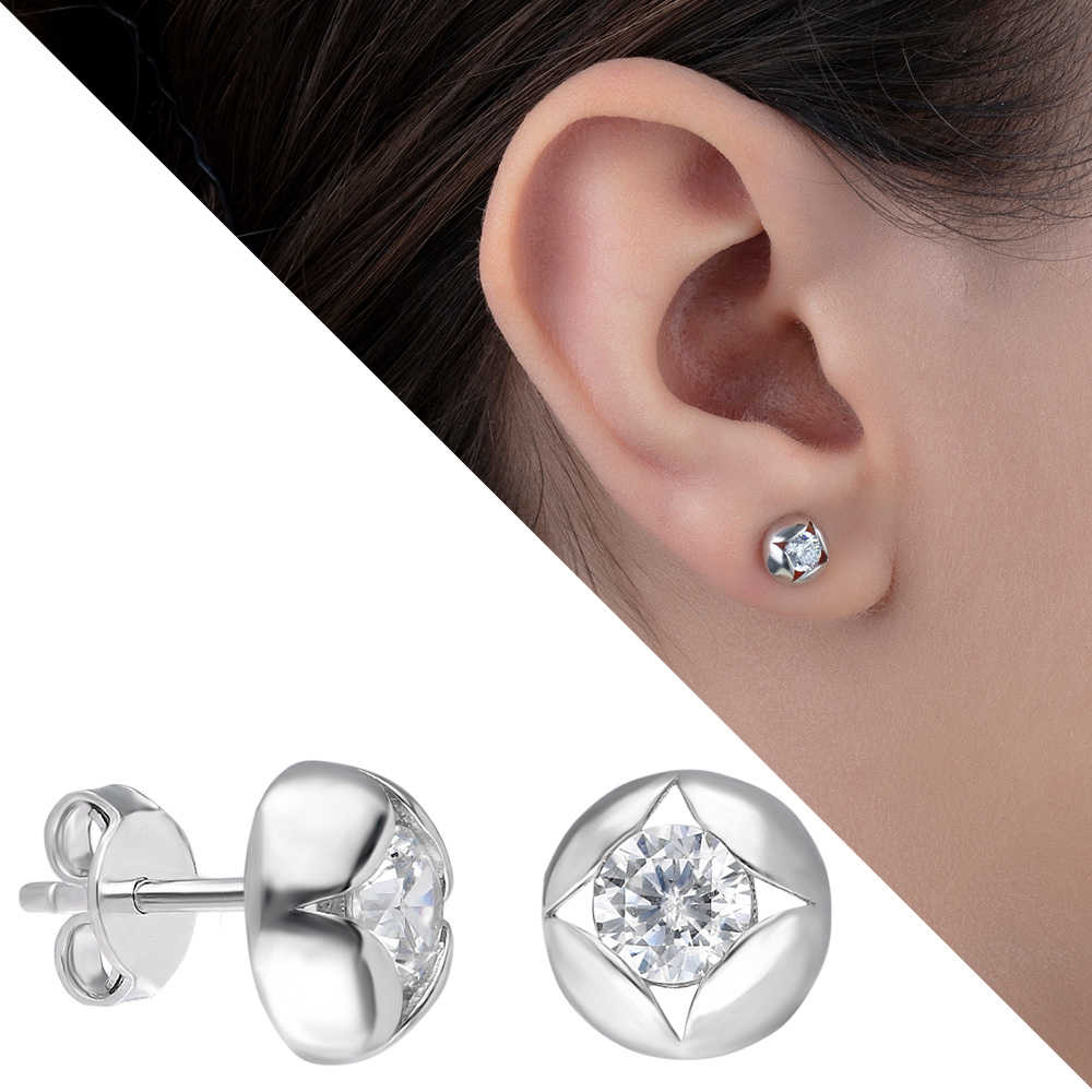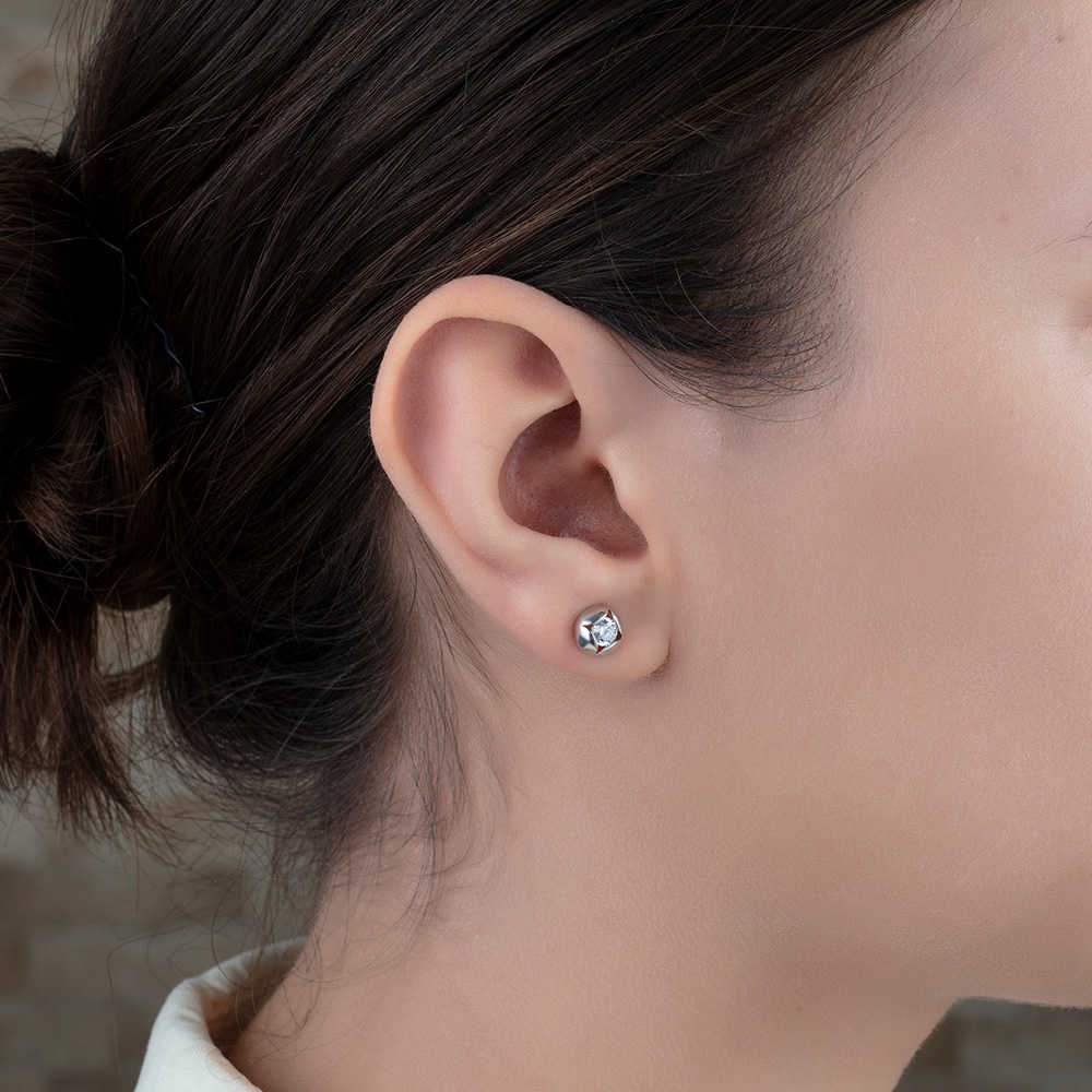 Zirkon Taşlı Küre Tasarım 925 Ayar Gümüş Küpe