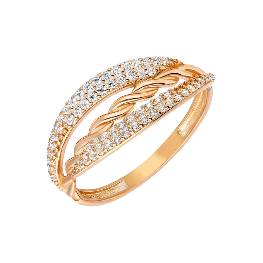 Zirkon Taşlı Örgü Tasarım Rose Renk 925 Ayar Gümüş Bayan Yüzük - 1
