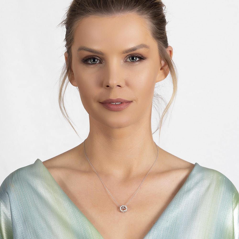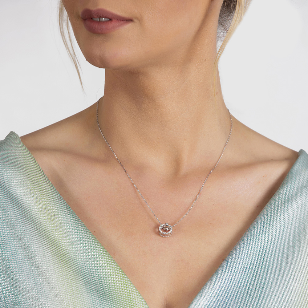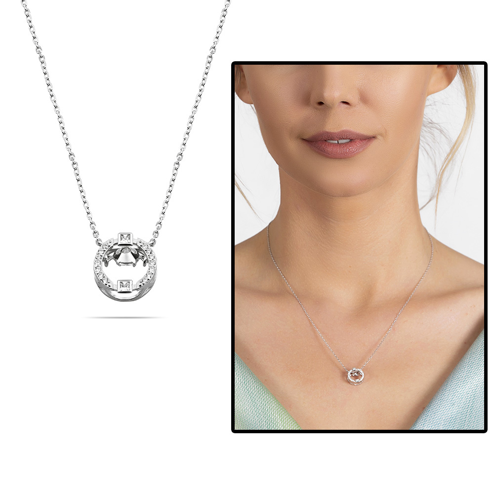 Zirkon Taşlı Oval Tasarım Sallantılı 925 Ayar Gümüş Kadın Kolye