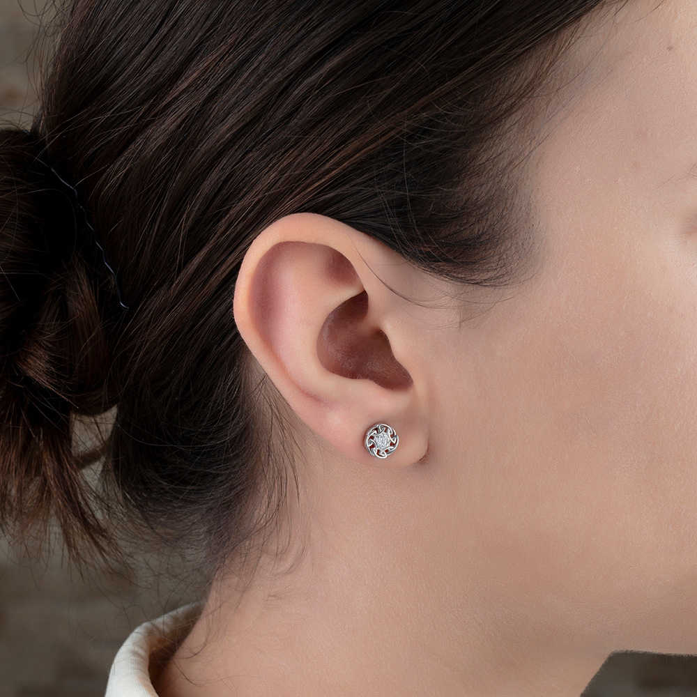 Zirkon Taşlı Oval Zincir Tasarım 925 Ayar Gümüş Küpe - 1
