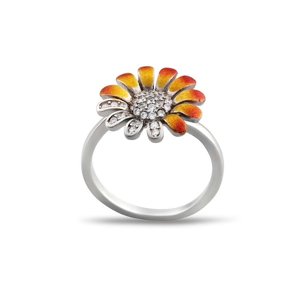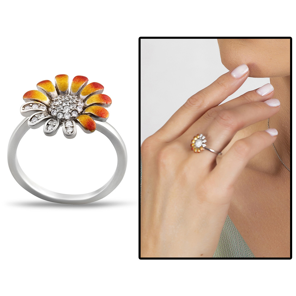 Zirkon Taşlı Papatya Tasarım 925 Ayar Gümüş Kadın Yüzük