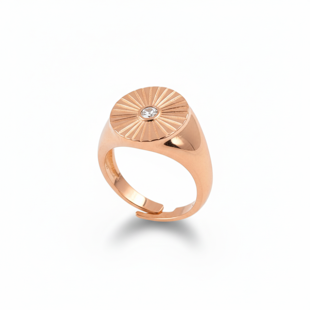 Zirkon Taşlı Papatya Tasarım Rose Renk Ayarlanabilir Ölçü 925 Ayar Gümüş Kadın Tektaş Yüzük