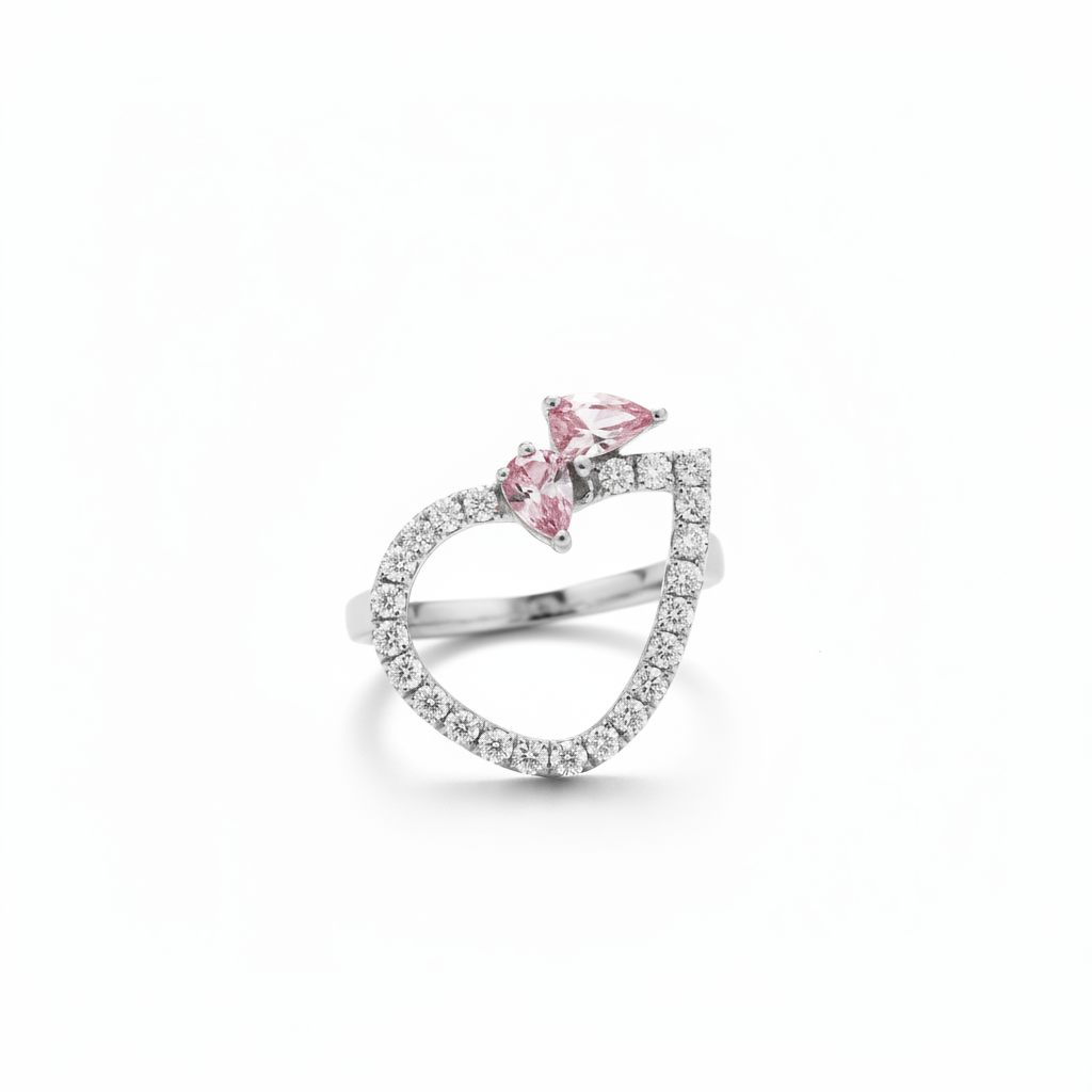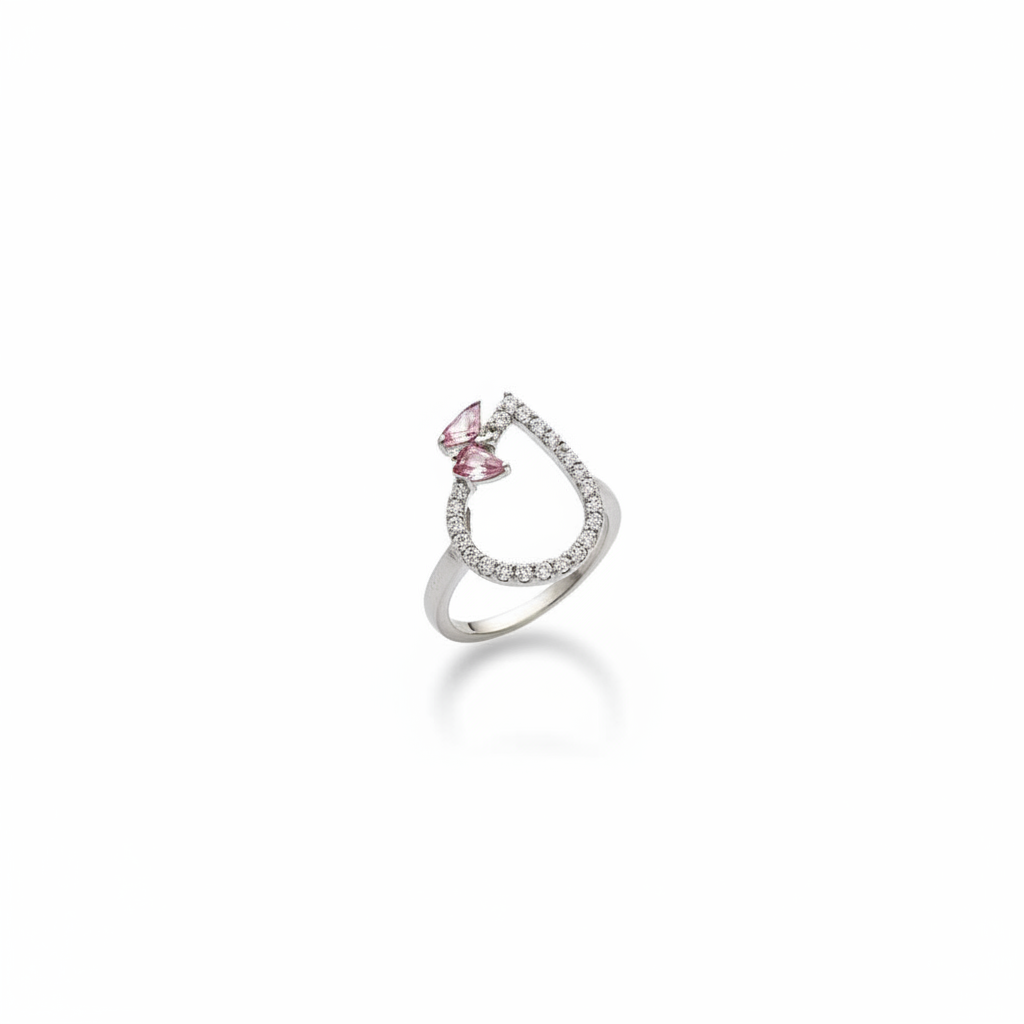 Zirkon Taşlı Pembe Mineli Damla Model Kelebek Tasarım 925 Ayar Gümüş Bayan Yüzük