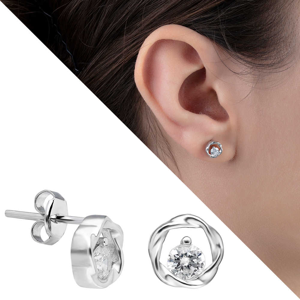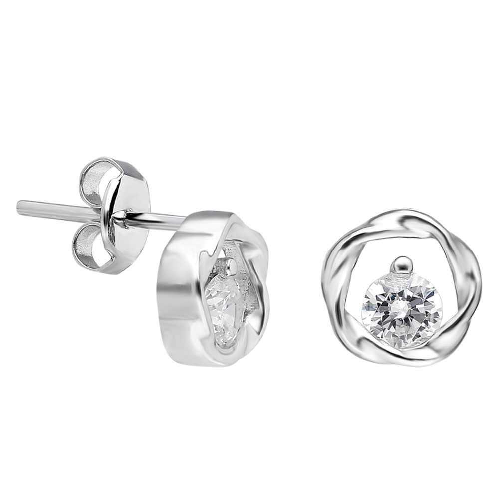 Zirkon Taşlı Rüzgar Gülü Tasarım 925 Ayar Gümüş Tektaş Küpe - 1