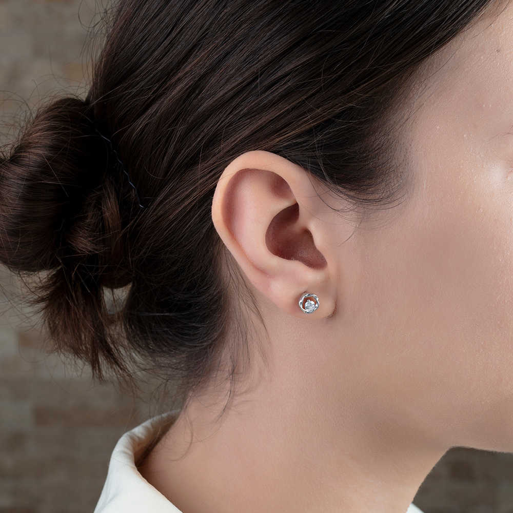 Zirkon Taşlı Rüzgar Gülü Tasarım 925 Ayar Gümüş Tektaş Küpe