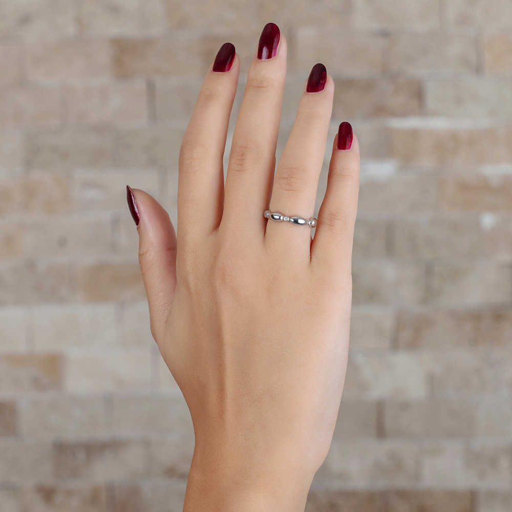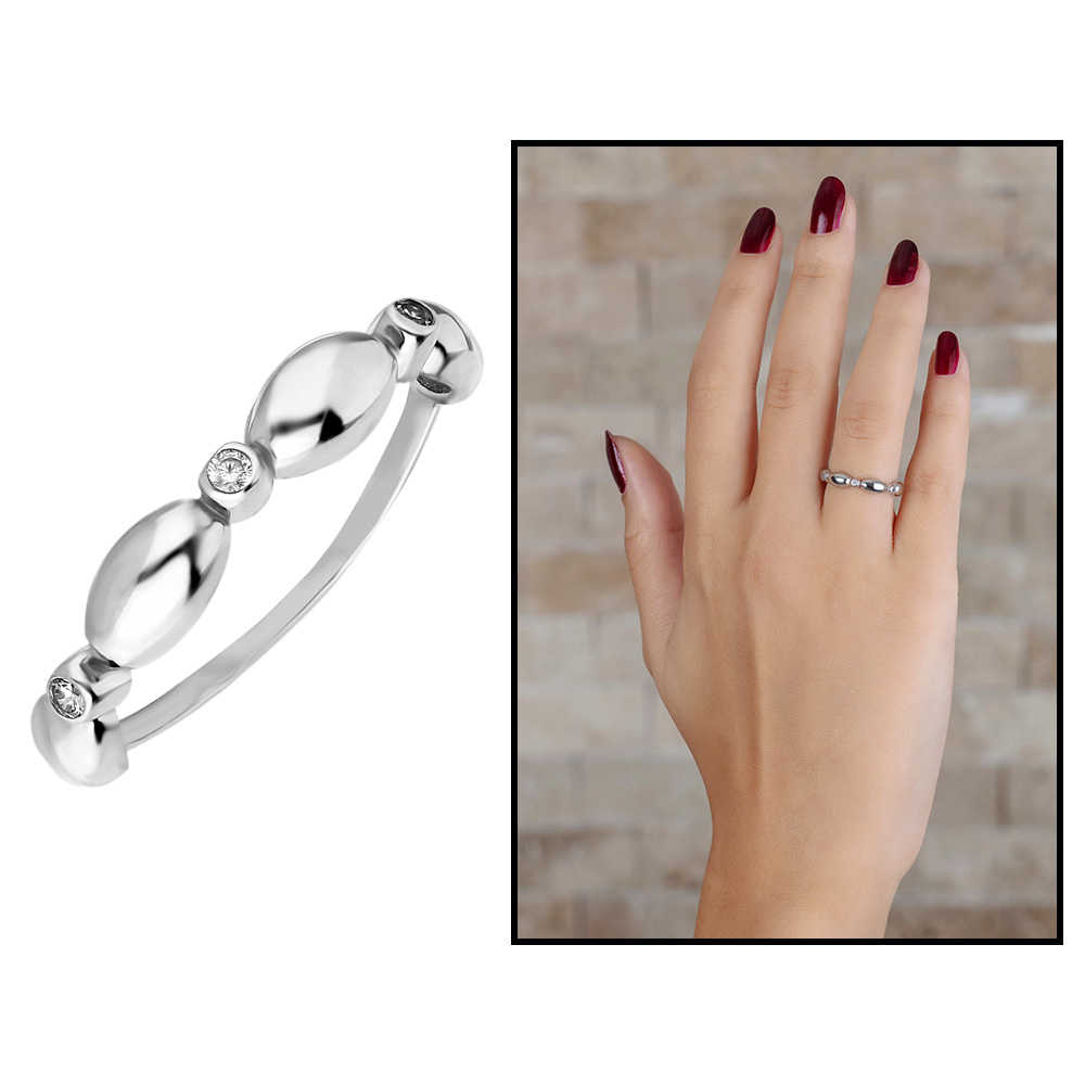 Zirkon Taşlı Sıralı Arpa Tasarım 925 Ayar Gümüş Bayan Yüzük